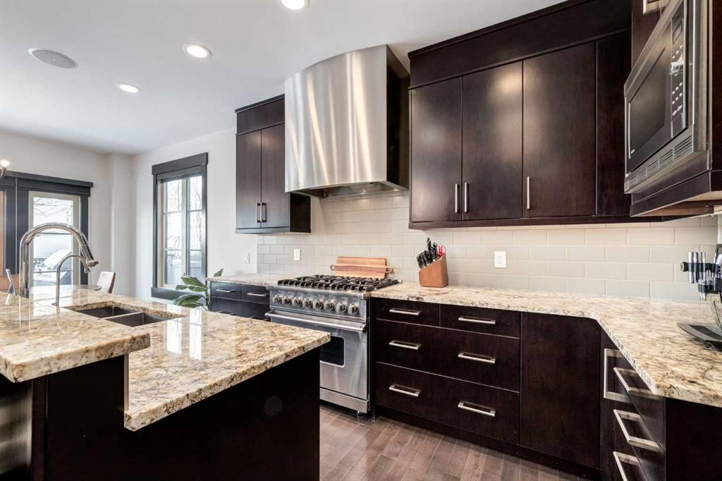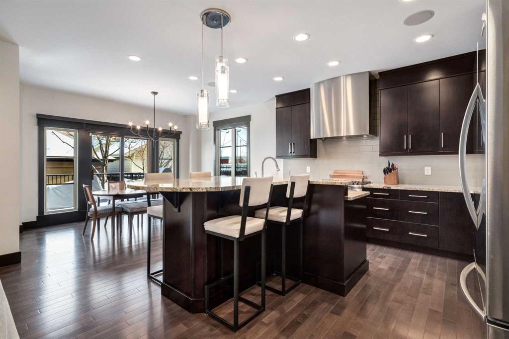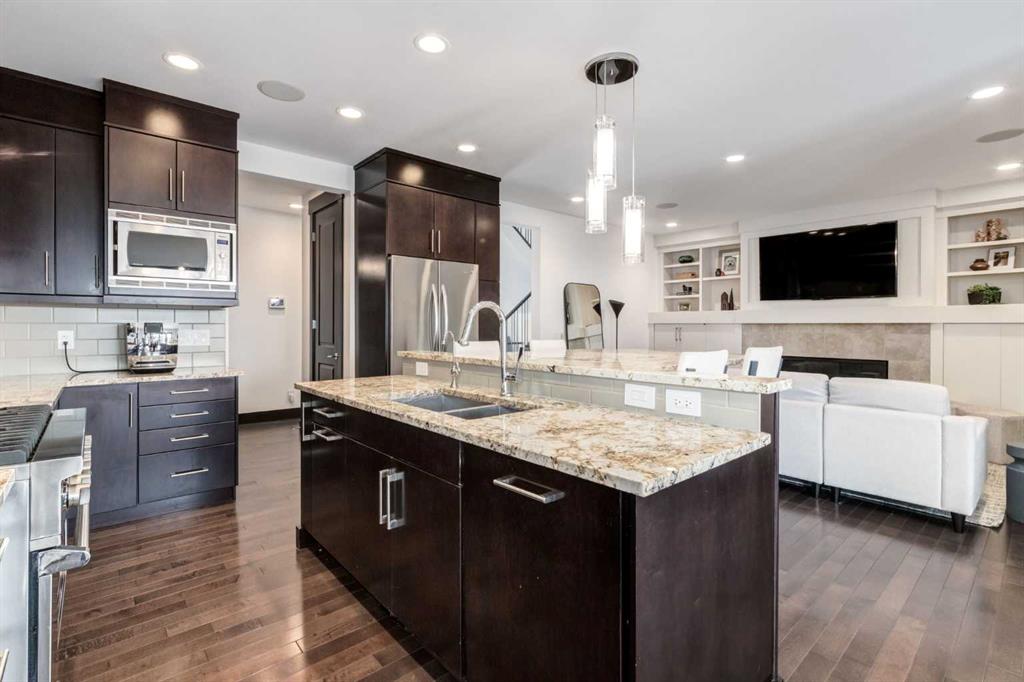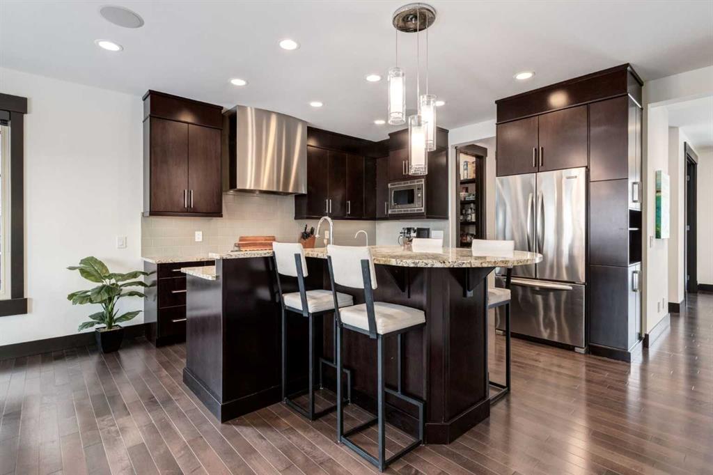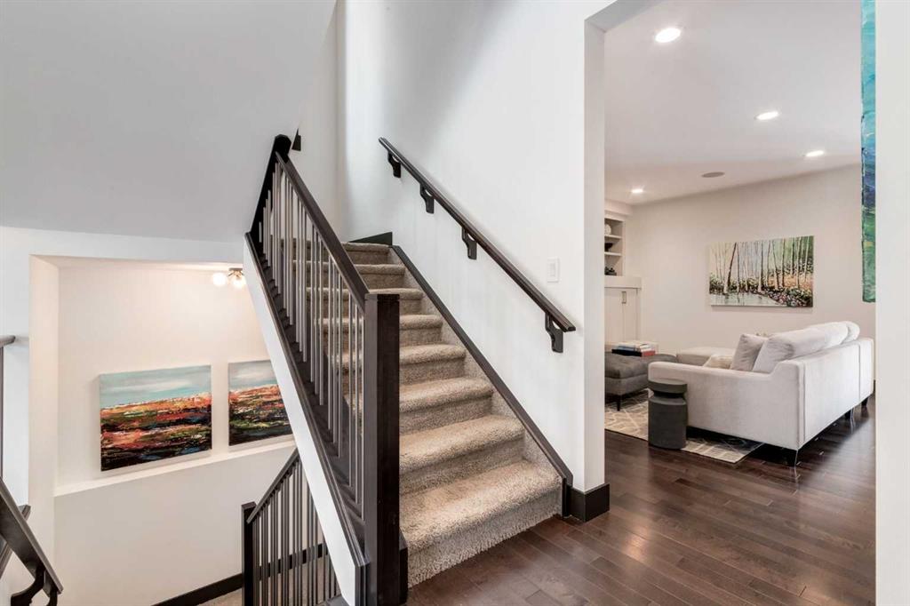 With 3,317 SF of beautifully designed living space, a rare OVERSIZED double garage (28′ x 22′) and situated on the largest lot on Murmansk Way, this home is sure to impress! This exceptional custom home offers 2,507 SF above grade plus 810 SF in the fully developed basement, delivering a rare combination of scale, craftsmanship, and modern design updates. Built in 2010 with over $100,000 in custom upgrades, the home showcases 10-foot ceilings on the main and upper floors and 9-foot ceilings in the basement, creating an airy, open feel rarely found in comparable homes. The main level is designed for both elevated everyday living and entertaining. Custom built-ins including a dedicated office workspace, front entry bench, and feature fireplace wall add both sophistication and practicality. At the heart of the home is a chef-inspired kitchen featuring a Viking 6-burner dual-fuel range, custom hood fan, Miele dishwasher, and extensive cabinetry, all flowing seamlessly into the dining and living spaces. From here, step outside to the oversized deck overlooking the backyard, perfect for summer gatherings and outdoor living. A mud room with built-ins and powder room complete this space. Upstairs, the home continues to impress with a luxurious primary retreat with walk-in closet and a spa-inspired ensuite featuring in-floor heated flooring, dual vanities, soaker tub and separate shower. A spacious laundry room, 2 additional and generously scaled guestrooms which share a 5 piece bathroom are also found on this level. The finished basement comes complete with a family room, den, 4th bedroom and 4 piece bathroom. A built-in Tannoy speaker system provides integrated sound throughout the main level, primary suite, ensuite, and basement. Recent design improvements include a 2022 interior refresh by Ana Interiors, introducing updated paint, lighting, wallpaper and a beautifully reimagined powder room that elevates the home’s modern aesthetic. Mechanical upgrades include a tankless hot water system and Kinetico water system, while professional furnace, duct, and carpet cleaning was completed in March 2026 and ensures the home is move-in ready and demonstrates continued pride of ownership. Within walking distance to several playgrounds, minutes to an array of private and public schools, short driving/cycling distance to Marda Loop, North Glenmore Park and Sandy Beach. Book your showing today!