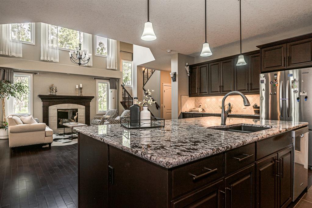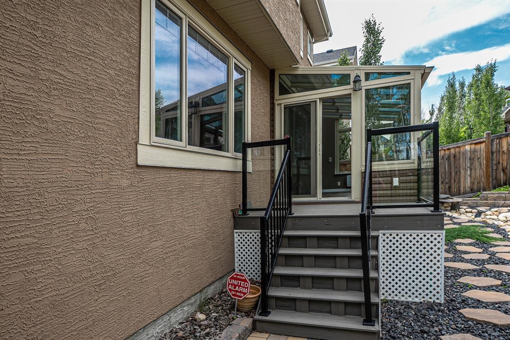 Nestled in a prime location, this residence is adjacent to a lush, tranquil forest along its east side and north side, offering exceptional views and a seamless connection to nature. Experience the pinnacle of luxury living in this stunning 3,136 sq. ft. estate, ideally situated on an elevated lot in the prestigious community of Aspen Woods. This rare gem offers unparalleled privacy, backing onto protected greenspace with no neighboring properties to the north and east, creating a serene retreat just a 5 to 10-minute walk from the renowned Webber Academy. Step inside to an open-concept masterpiece featuring soaring ceilings, elegant hardwood flooring, and a grand living room anchored by a marble-faced fireplace. The gourmet chef’s kitchen is equally impressive, highlighted by a spacious 5’x8′ granite island and premium stainless steel appliances. For year-round comfort, enjoy the spectacular $100K four-season sunroom, completed with heat-retaining glass and radiant floor heating. The upper level offers three spacious bedrooms and a versatile bonus room with breathtaking, open views of the forests, hills and majestic Rocky Mountains. Complete with over $70K in professional artisan landscaping, an unspoiled basement with 9-foot ceilings and featuring a separate entrance, offering excellent future development potential. Outside, the property continues to impress with over $70,000 invested in extensive, artist-designed professional landscaping. This home beautifully combines natural surroundings with refined architectural design. This is a rare opportunity to own a meticulously upgraded gem in one of Calgary’s most sought-after communities. Call today to schedule your private showing!