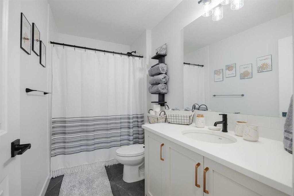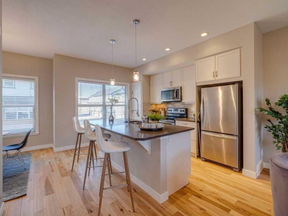 OPEN HOUSE SUNDAY FEB 15 (2:00-4:00) You’re going to LOVE this – STYLISH MODERN COMFORT on the doorstep of the Rockies! This is not your average home – it is has a style and charm that you don’t often find in this price range. The heart of your new home is the beautiful OPEN CONCEPT kitchen with GAS STOVE set into gorgeous cabinets and quartz countertops, overlooking your living room and dining room. The stylish accents give you a feel of modern comfort, while at the same time, the GAS FIREPLACE provides warmth and coziness. Upstairs is your PRIVATE RETREAT with builder’s upgrades: vaulted ceilings, gorgeous 5 piece ensuite and extra large walk-in closet. Your BACK YARD RETREAT is beautifully landscaped (and you’ve got RV PARKING as well). Finally, your BASEMENT IS FULLY DEVELOPED, including a 2 piece bathroom, so there is nothing left to do – just move right in and start living! Priced to sell – don’t miss out! (Note: HOA of $75/year, includes local amenities like parks, trails, community garden, a toboggan hill, skating ice, firepit, kids activities, etc) (Note: New Home Warranty is still in effect)