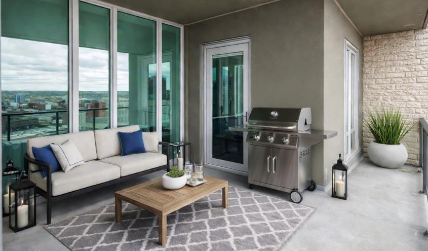 Step outside to your large private balcony with a gas hookup, ideal for summer BBQs while enjoying the city and mountain backdrop.