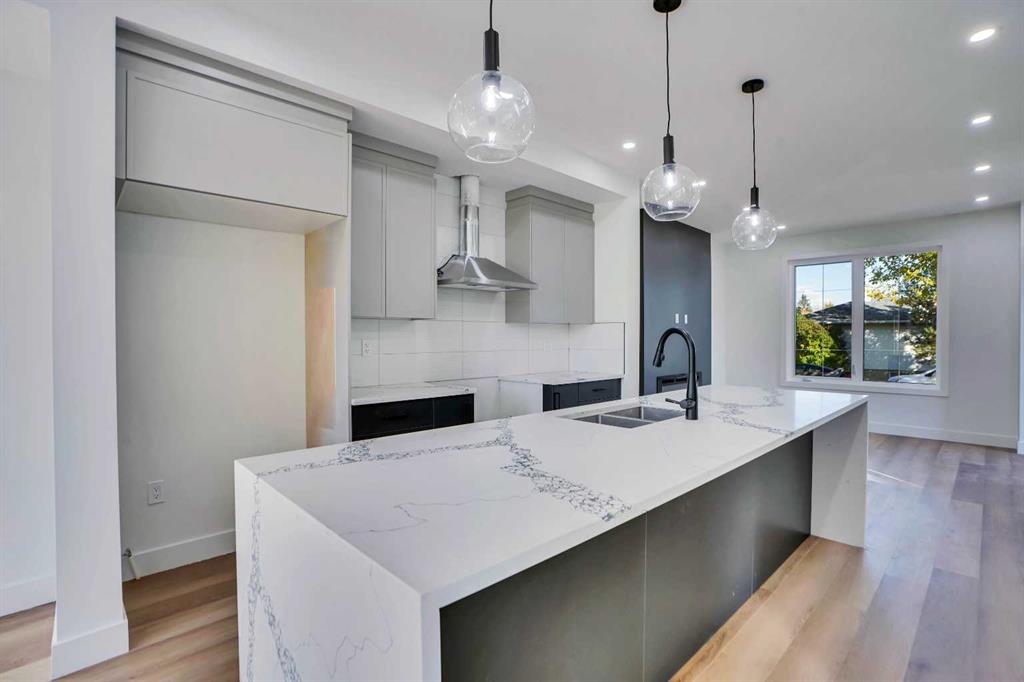 Welcome to your dream home in the amazing neighborhood of Capitol Hill. This brand-new, premium south-facing corner unit townhouse blends modern elegance with everyday comfort. With over 1,800 Sq Ft of finished living space, you’ll enjoy open-concept design, high ceilings, and oversized windows that fill each room with natural light. The gourmet kitchen showcases quartz countertops, high-end appliances, and custom cabinetry – perfect for cooking and entertaining. Upstairs, the primary suite features a luxury ensuite and large windows with downtown views. The fully finished basement adds a recreation room with wet bar, spacious bedroom, and full bath. Just minutes from downtown, SAIT, U of C, Confederation Park, restaurants, and cafes, this home delivers the ultimate urban lifestyle in a quiet residential setting.