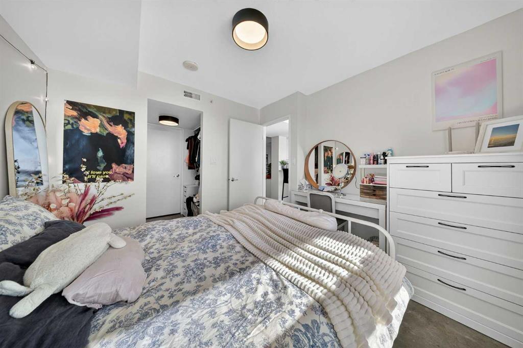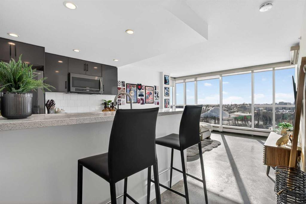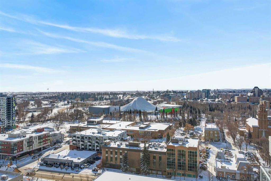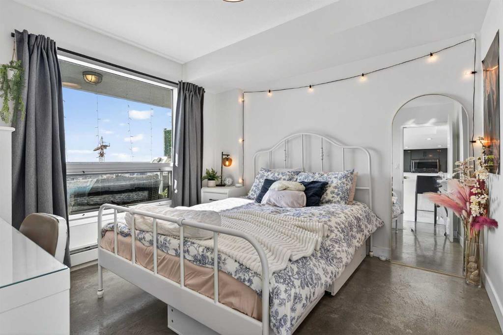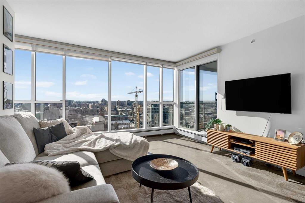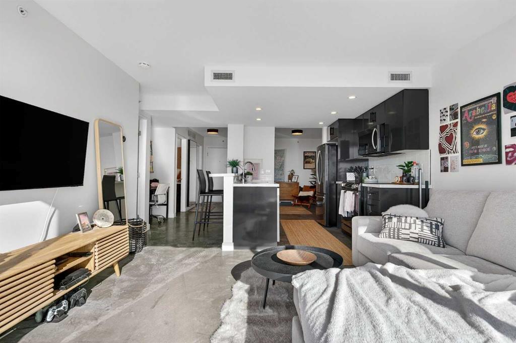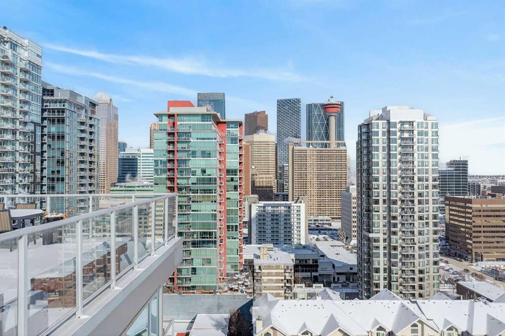 Welcome home! This 18th floor condo offers over 700 square feet of well-designed space with a functional, open layout that feels bright and connected. The kitchen features a breakfast bar for casual meals and opens directly into the living area. Floor to ceiling, south facing windows bring in natural light throughout the day, and the balcony offers open views with plenty of afternoon and evening sun with views of the mountains on a clear day. The primary bedroom includes a walk-through closet with cheater access to the 4-piece bathroom, creating a practical and efficient layout. There is also a generous flex space that could be used as a dining area, home office, reading corner, or a dedicated yoga or wellness space depending on your needs. In unit laundry and air conditioning add everyday comfort. A titled underground parking stall makes parking easy, and the building amenities include a recreation room, outdoor terrace/picnic area, and a rooftop patio with wide city and Stampede Park views. Located in the heart of the Beltline, you are close to 17th Avenue, MacLeod Trail, schools, shopping, and dining options. Book your showing with your favourite REALTOR® today.