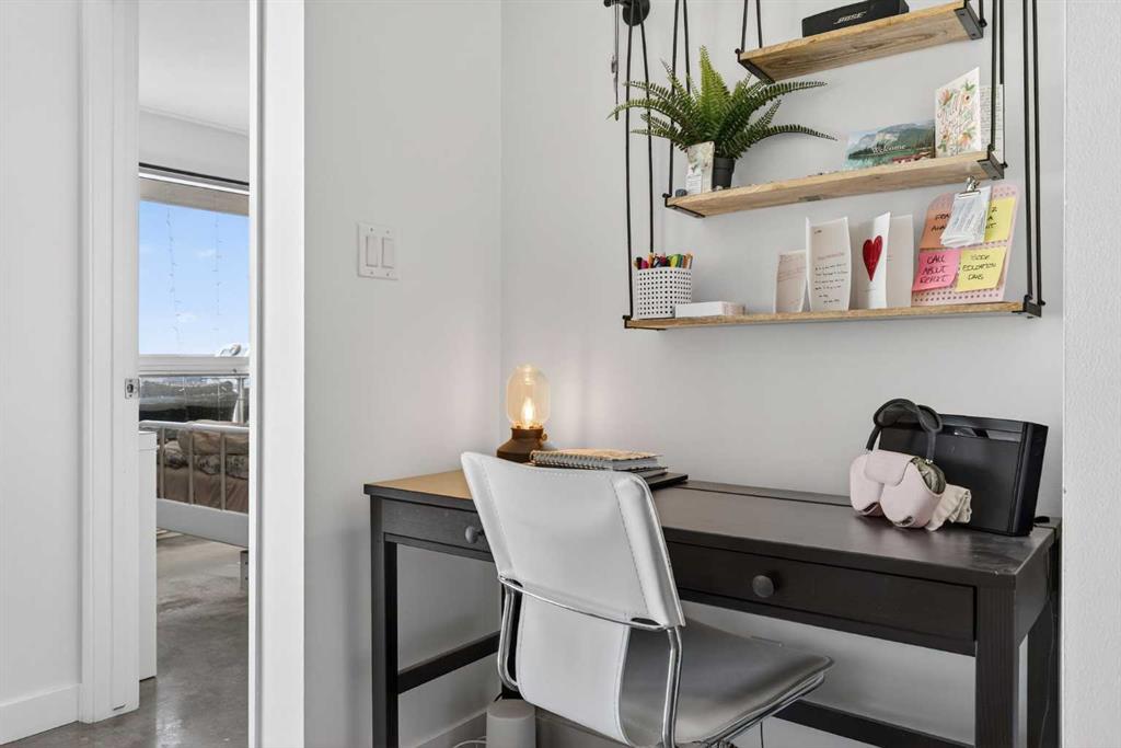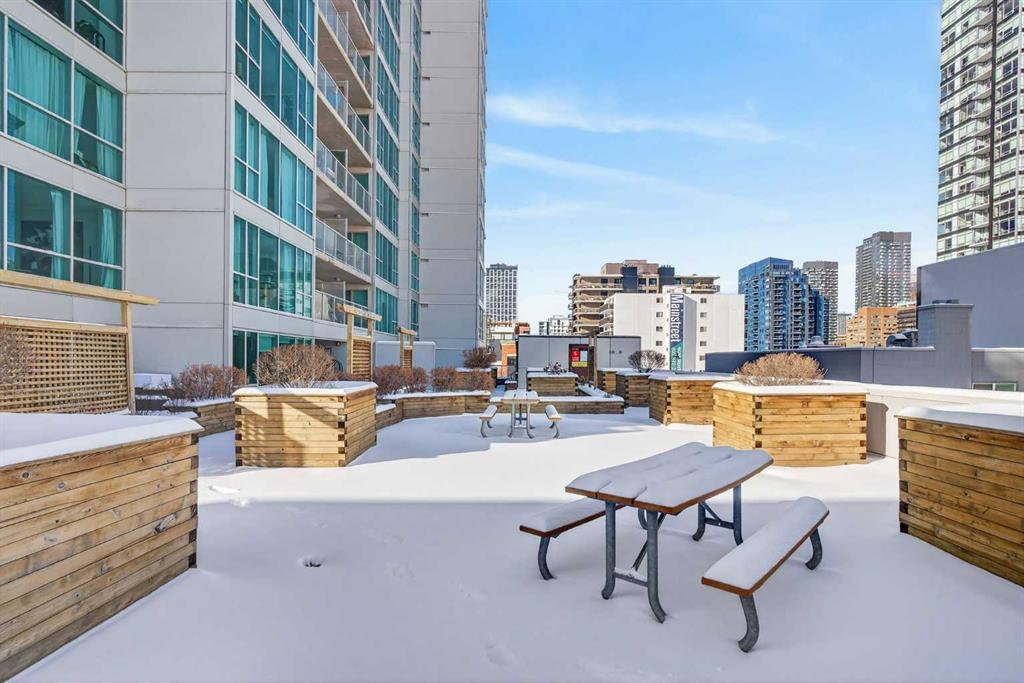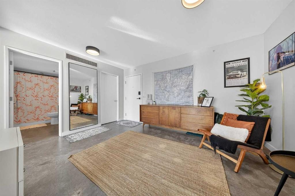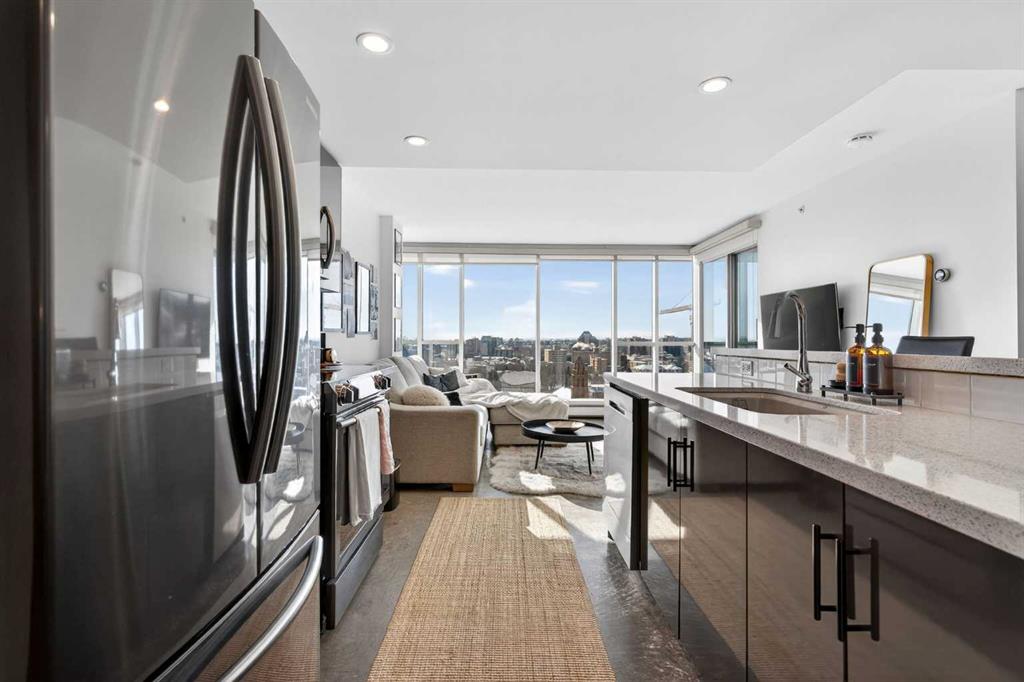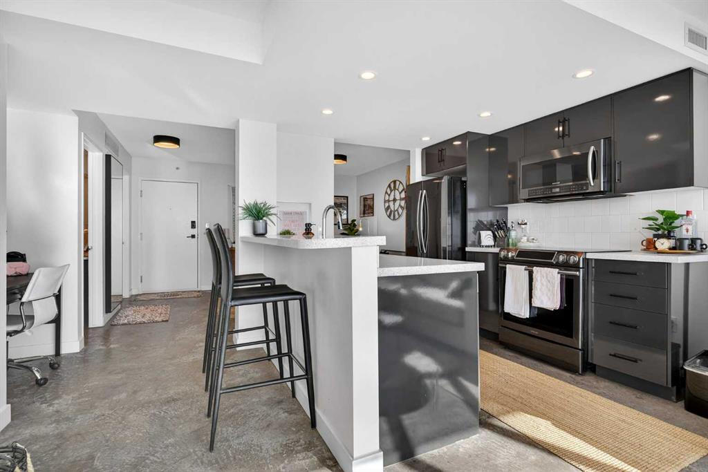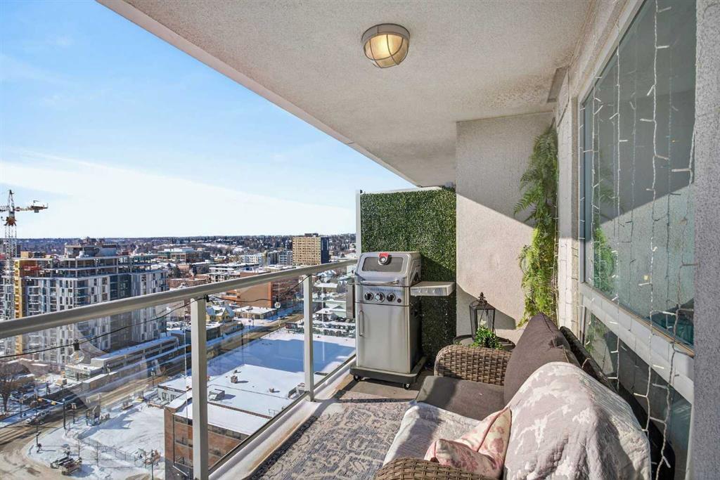 Welcome home! This 18th floor condo offers over 700 square feet of well-designed space with a functional, open layout that feels bright and connected. The kitchen features a breakfast bar for casual meals and opens directly into the living area. Floor to ceiling, south facing windows bring in natural light throughout the day, and the balcony offers open views with plenty of afternoon and evening sun with views of the mountains on a clear day. The primary bedroom includes a walk-through closet with cheater access to the 4-piece bathroom, creating a practical and efficient layout. There is also a generous flex space that could be used as a dining area, home office, reading corner, or a dedicated yoga or wellness space depending on your needs. In unit laundry and air conditioning add everyday comfort. A titled underground parking stall makes parking easy, and the building amenities include a recreation room, outdoor terrace/picnic area, and a rooftop patio with wide city and Stampede Park views. Located in the heart of the Beltline, you are close to 17th Avenue, MacLeod Trail, schools, shopping, and dining options. Book your showing with your favourite REALTOR® today.