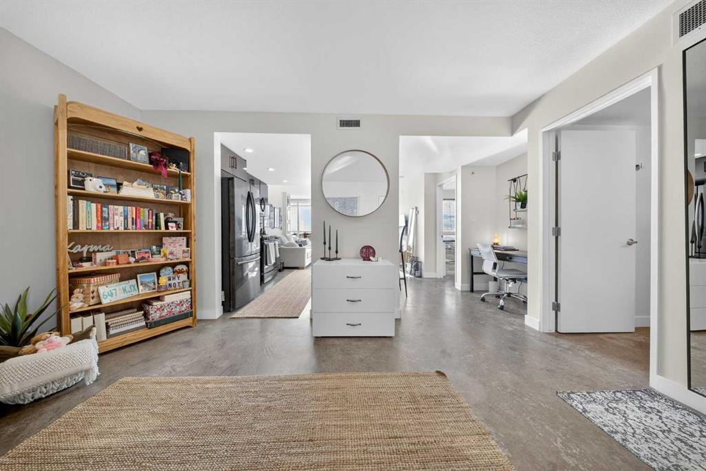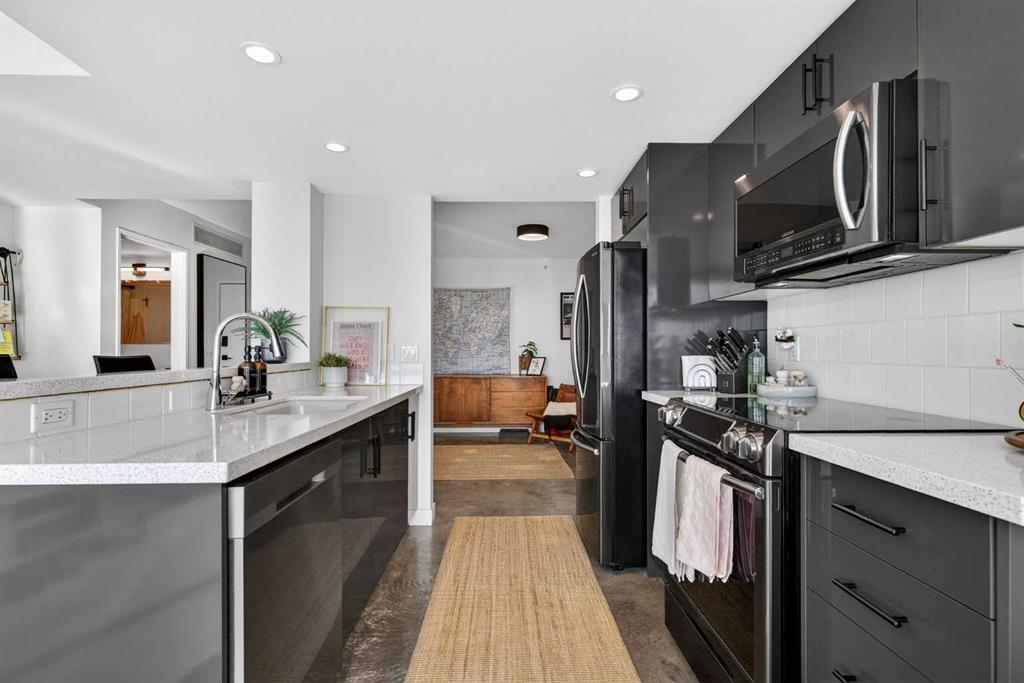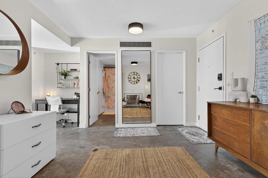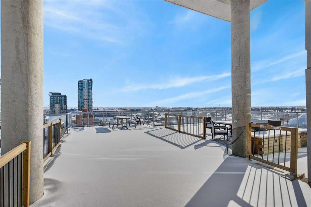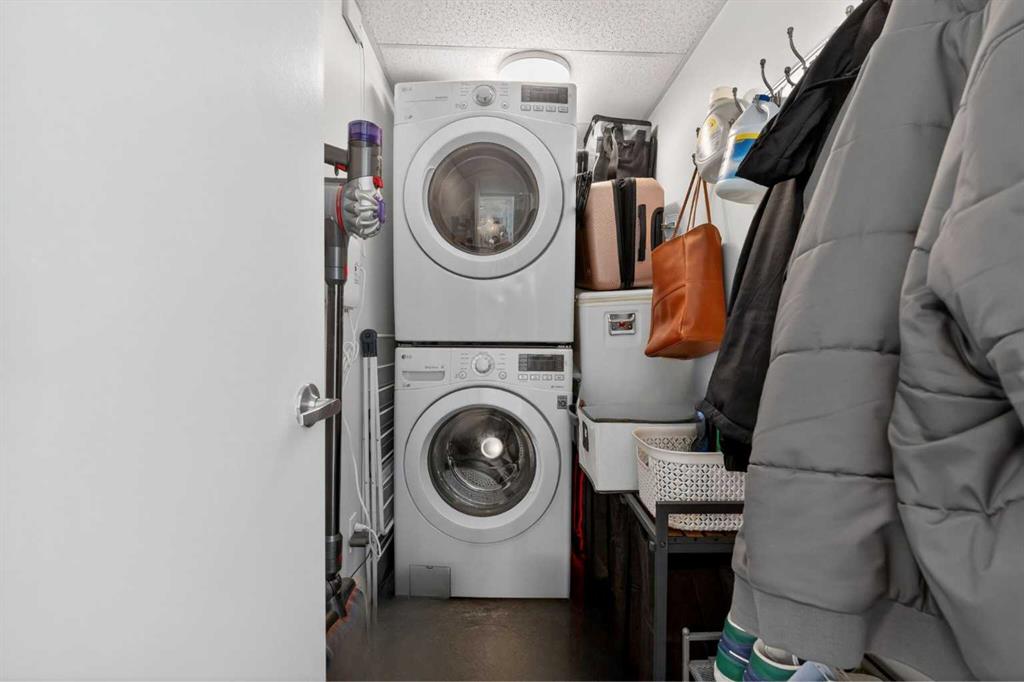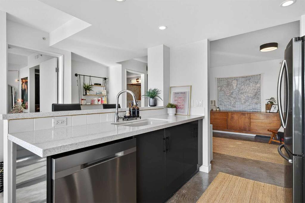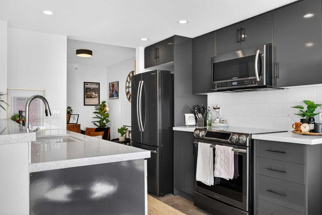 Welcome home! This 18th floor condo offers over 700 square feet of well-designed space with a functional, open layout that feels bright and connected. The kitchen features a breakfast bar for casual meals and opens directly into the living area. Floor to ceiling, south facing windows bring in natural light throughout the day, and the balcony offers open views with plenty of afternoon and evening sun with views of the mountains on a clear day. The primary bedroom includes a walk-through closet with cheater access to the 4-piece bathroom, creating a practical and efficient layout. There is also a generous flex space that could be used as a dining area, home office, reading corner, or a dedicated yoga or wellness space depending on your needs. In unit laundry and air conditioning add everyday comfort. A titled underground parking stall makes parking easy, and the building amenities include a recreation room, outdoor terrace/picnic area, and a rooftop patio with wide city and Stampede Park views. Located in the heart of the Beltline, you are close to 17th Avenue, MacLeod Trail, schools, shopping, and dining options. Book your showing with your favourite REALTOR® today.