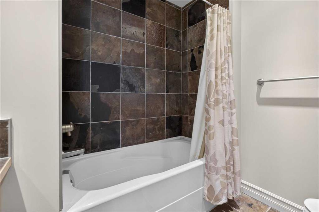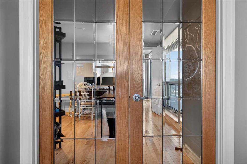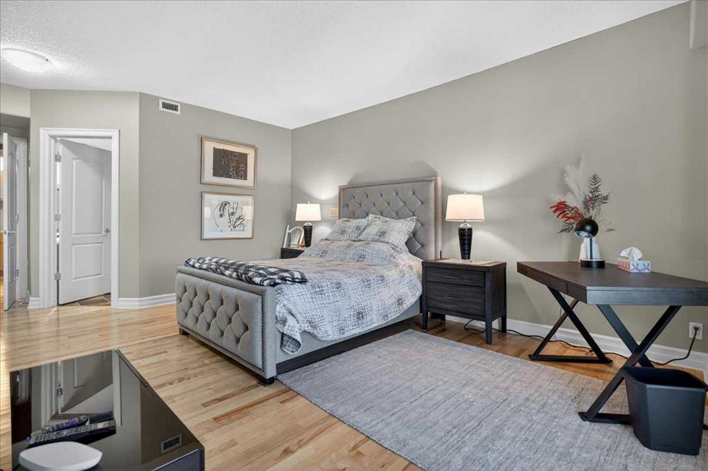 Designed with both style and comfort in mind, the open-concept living space features rich hardwood and slate flooring, granite countertops, and a chef-inspired kitchen complete with a double wall oven—perfect for entertaining. The primary suite is a true sanctuary, offering a custom walk-in closet with built-ins and a spa-like ensuite highlighted by an air-jetted tub. A generous second bedroom, flexible den space, and in-suite laundry with sink and abundant storage complete this well-appointed home.