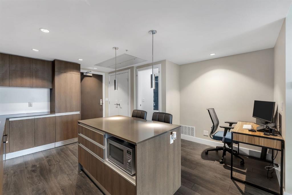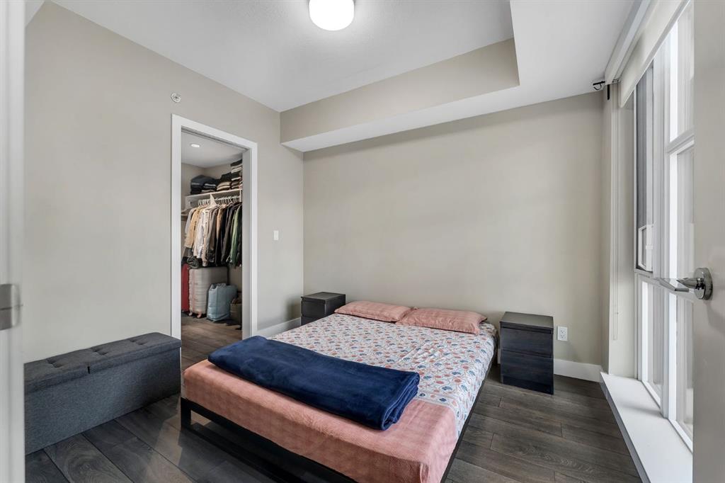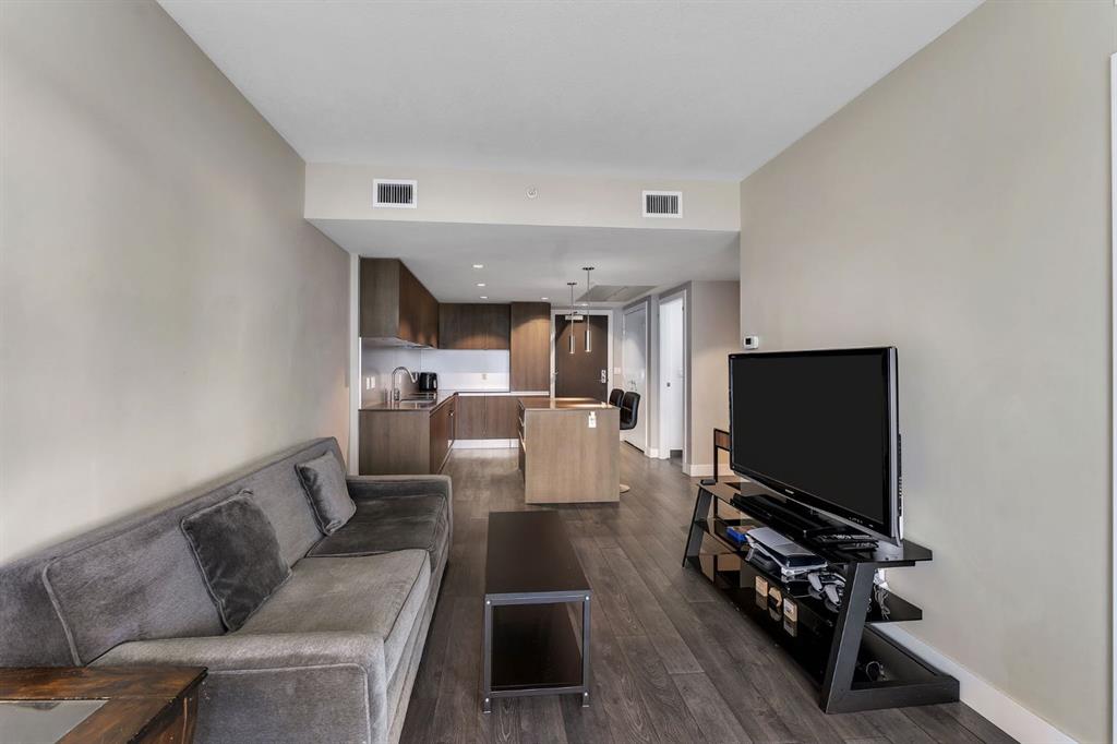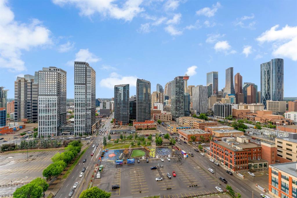 Welcome to the 18th floor of South Guardian Tower—this bright and spacious one-bedroom, one-bathroom condo in the South Tower offers stunning views of downtown Calgary and the mountains. Expansive windows fill the space with natural light while showcasing breathtaking scenery. The open-concept kitchen is designed for both functionality and style, featuring a central island, quartz countertops, and stainless steel appliances—perfect for cooking and entertaining. The bedroom offers floor-to-ceiling windows, a walk-through closet, and access to a sleek four-piece bathroom. Enjoy the views from your living room or step out onto your oversized private balcony to take it all in. This unit also includes a titled underground parking stall, a storage unit, and access to premium building amenities, including a modern fitness center (6th floor), yoga studio, social lounge with a garden terrace, and a meeting space. Ideally located across from the Calgary Stampede grounds and Cowboys Casino, you’re just steps from events, entertainment, dining, cafes, and boutique shopping, with quick access to Macleod Trail and Deerfoot Trail. Don’t miss this opportunity, book your private viewing today and be sure to check out the virtual tour!