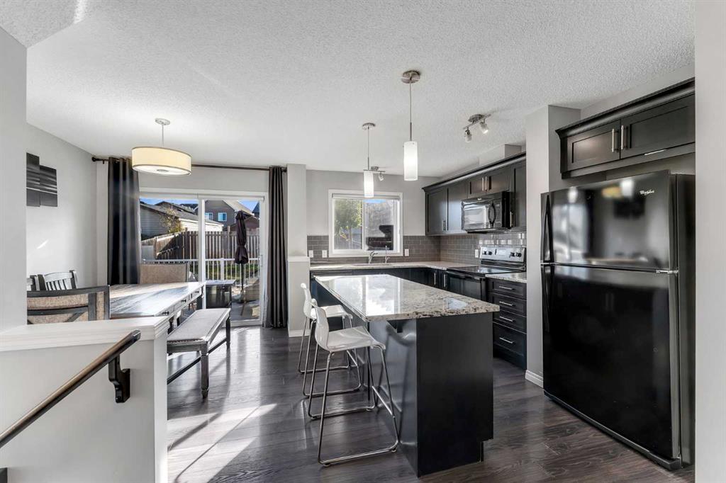 *Open House Saturday, October 25th from 1-3pm.* Offering a thoughtful layout, modern finishes, and standout outdoor space, this bright & functional 4 bedroom home in Cranston checks every box. The main floor greets you with a generous family room and a practical entryway with storage. The open-concept kitchen is anchored by a central island with granite countertops, a full pantry, and adjoining dining area – an ideal setup for cooking, gathering and entertaining. Outside, this property truly shines. The landscaped backyard features a large composite deck with a gas line for barbecuing, while the low-maintenance side yard includes a shed and convenient access from the separate side entrance; offering potential for a secondary suite pending approval from the city. An oversized double parking pad at the back provides excellent off-street parking and future garage potential. Upstairs, you’ll find two bright secondary bedrooms, a four-piece bathroom, and a spacious closet with laundry hook-ups for added convenience. The primary retreat is set apart with its own large walk-in closet and a private four-piece ensuite. The fully developed basement expands the living space even further with a fourth bedroom, another full bathroom, and a versatile recreation area perfectly suited for play space, workouts or cozy movie nights. A one-of-a-kind find in this price range – turnkey, fully finished, and unmatched value in this family-friendly neighbourhood with a playground & park just steps away. Cranston offers easy access to Deerfoot & Stoney Tr, great schools, an abundance of shopping & restaurants nearby, and beautiful walking trails & green space.