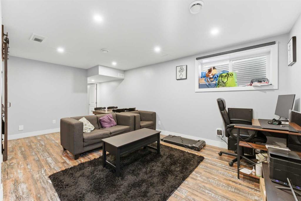 BASEMENT (SEPARATE ENTRANCE – ILLEGAL SUITE): Fully developed with second laundry, dishwasher, electric range (2023), kitchen, spacious living/dining area, and a large bedroom.