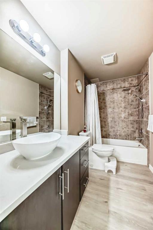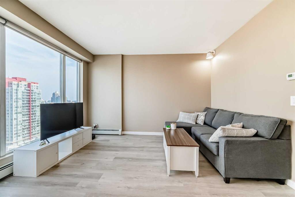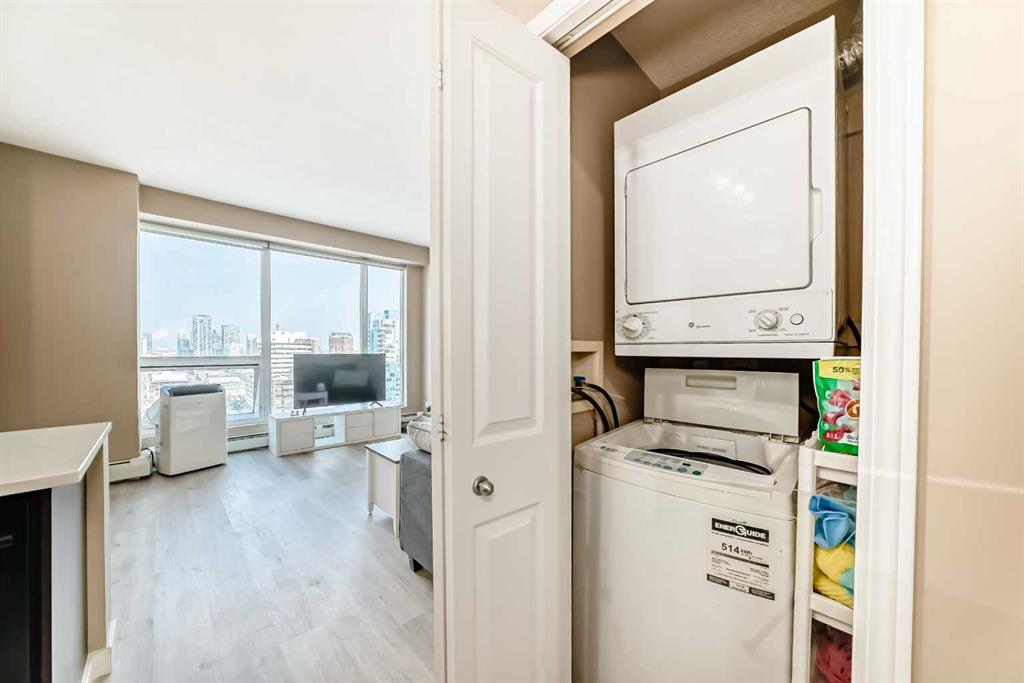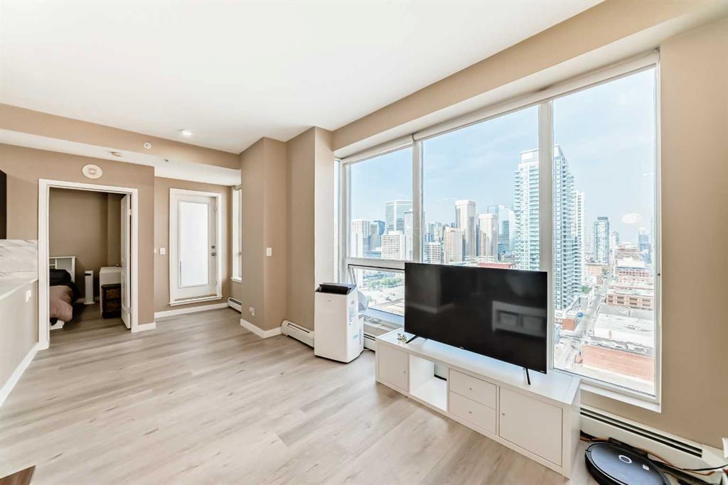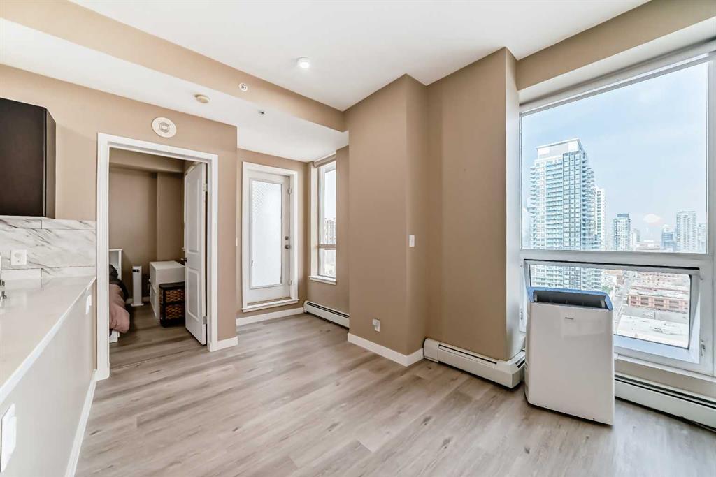 This 1-Bedroom plus office/den space Condo in the Heart of Calgary’s Beltline. Welcome to this beautifully appointed 1-bedroom and den condo, ideally located on the 18th floor, with views, in the vibrant Beltline community of Calgary. I’ve seen more condos than I can remember, but this is one of my favourite floor plans. The kitchen has everything you need and the space to make a full dinner: SS appliances, including an oversized double-door refrigerator, Quartz counters, and ample counter space. Newer luxury vinyl plank flooring throughout, and large windows allow the natural light to cascade in and offers you a beautiful view of the Calgary city skyline. There’s a space for an office, and you can relax on your private balcony and enjoy morning coffees or dinners with the view. Just steps away on the back side of the building is a Major grocery store, a Co-op, Asian and organic grocery options. Conveniently located to famous 17th Ave in Calgary, which offers the best dining options for the Calgary Food Scene. Don’t forget to take advantage of the free downtown light rail system, which is conveniently located mere blocks away from the apartment. Located steps away from the Bow River, you’ll enjoy easy access to scenic strolls, cycling, walking, and nearby parks such as the famous Princess Island Park. This condo comes with one titled underground parking stall #260; your vehicle is protected year-round. The building also offers secure access, providing residents with peace of mind. The gym is on the second floor. Condo fees include heat, water, and electricity. The building has security cameras and 4 main elevators for ease of access. THIS CONDO HAS EVERYTHING YOU NEED TO MAKE IT AN IDEAL 1ST HOME OR FOR AN INVESTMENT. Pets allowed with approval.