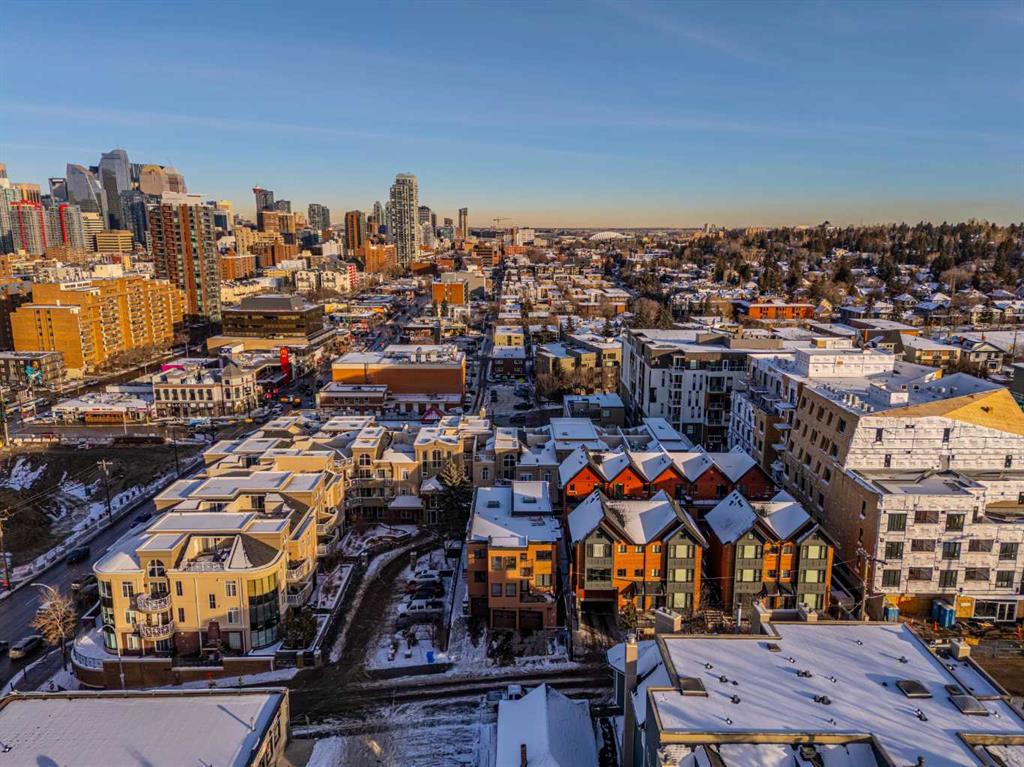 This spacious and unique 3-storey executive townhouse is quietly positioned in the heart of Bankview, offering an exceptional 10/10 inner-city location just steps from the energy, dining, and nightlife of 17th Avenue SW and the everyday convenience of 14 Street SW. Walk everywhere, commute downtown in minutes, and enjoy being surrounded by Calgary’s best cafés, shops, transit routes, and entertainment, all while still feeling tucked away and residential. This is true urban living done right. This home confidently leans into what makes it exceptional: two fireplaces, two balconies, and two skylights, a thoughtful combination that brings warmth, architectural interest, and incredible natural light throughout. From the moment you enter, you’re welcomed by a spacious front foyer with mudroom-style functionality and generous storage, creating a practical and polished arrival experience. Head up one level and the property continues to surprise. The wide open-concept main living area flows effortlessly, wrapped in windows and enhanced by tall ceilings that create a bright, airy atmosphere across all levels. Designed for both comfort and connection, the main floor features hardwood flooring and a striking two-way fireplace with custom built-ins anchoring the living and dining spaces. The contemporary kitchen is finished with stainless steel appliances, concrete countertops, and a functional breakfast bar. A private west-facing balcony off the living room extends the space outdoors, perfect for morning coffee or evening unwinding. Completing this level is a convenient and well-located half bath, ideal for guests and everyday living. The upper levels continue the home’s thoughtful design and flexibility. As you head upstairs, you’re greeted by a beautiful skylight that fills the space with natural light, complemented by oversized windows throughout that create a bright, open atmosphere. The primary suite is a true retreat with its own fireplace, dual closets, and a spa-inspired ensuite featuring double sinks, a soaker tub, steam shower, and an additional skylight that brings in even more sunshine. A generous second bedroom is paired with a versatile flex room, ideal as a home office, fitness area, or third bedroom, opening onto a southwest-facing balcony for added light and outdoor connection. A full upper-level main bathroom and conveniently located laundry complete this level, rounding out a layout that’s both functional and beautifully designed. Currently tenanted, this property offers a strong opportunity for investors seeking a turnkey inner-city rental, while also appealing to buyers looking to make it their own. With downtown minutes away, quick access along 14th Street, and a vibrant entertainment district nearby, this location supports long-term demand and lifestyle appeal. Add low-maintenance living, low condo fees, and true lock-and-leave convenience, making it ideal for busy professionals, frequent travelers, and hands-off investors alike. Book a tour today!