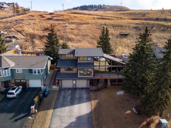 Nestled in the heart of Sunset Ridge this extensively renovated and upgraded home is a true gem adorned with gemstone lighting! With over $100,000 in upgrades this home is as unique as the lot it sits on. The HUGE 21′ x 35′ HEATED fully finished triple car garage features a custom painted floor and three overhead doors, two leading to the lane in the back and one into the backyard. All permits were completed for the 16′ extension to the garage. Inside you will find a great open concept layout on the main floor. Featuring a brand new kitchen, renovations completed in 2025 featuring all new SS appliances, gorgeous quartz countertops, quartz back splash, original shaker style cabinets with new brass hardware, large waterfall kitchen island perfect for entertaining and custom coffee bar with with more storage space in the built in cabinets below. No details were overlooked and no expense was spared! The popcorn ceilings are no more with scraped knock down ceilings. The main floor half bath was also renovated with new vanity, toilet and floating shelves. The living room features a cozy gas fireplace and plenty of windows to let the natural light enhance the warm hardwood floors. Outside in the large back yard the deck was extended the length of the house with composite decking, glass railing and gas line with three connectors perfect for those summer time BBQ’s with the whole family. Upstairs you will find hardwood flooring throughout, 2 spacious bedrooms and the primary retreat large enough for a king bed, mountain views, walk in closet and 4 piece ensuite. The basement was completed with all permits 7 years ago with cozy family room, 4th bedroom, 3 pc bathroom and plenty of storage. Perfect for guests or in law suite! The laundry room is also in the basement with brand new washer and dryer pair. The HWT was just replaced in 2021, the furnace is original and runs great with regular servicing and cleaning, AC was installed in 2022 to keep you cool in the summer months. It was last serviced in the summer of 2025. Sunset Ridge is home to kms of walking paths, Ranchview K-8 School, St. Timothy High School, shops, restaurants and gas bar with quick access to the Mountains or into town with the overpass construction almost at completion. Book a showing today and don’t miss out on this unique one of a kind property.