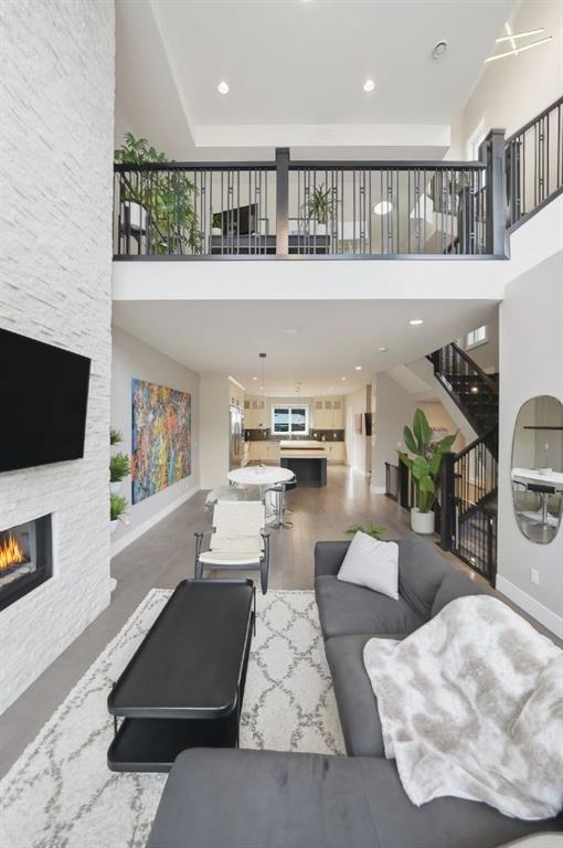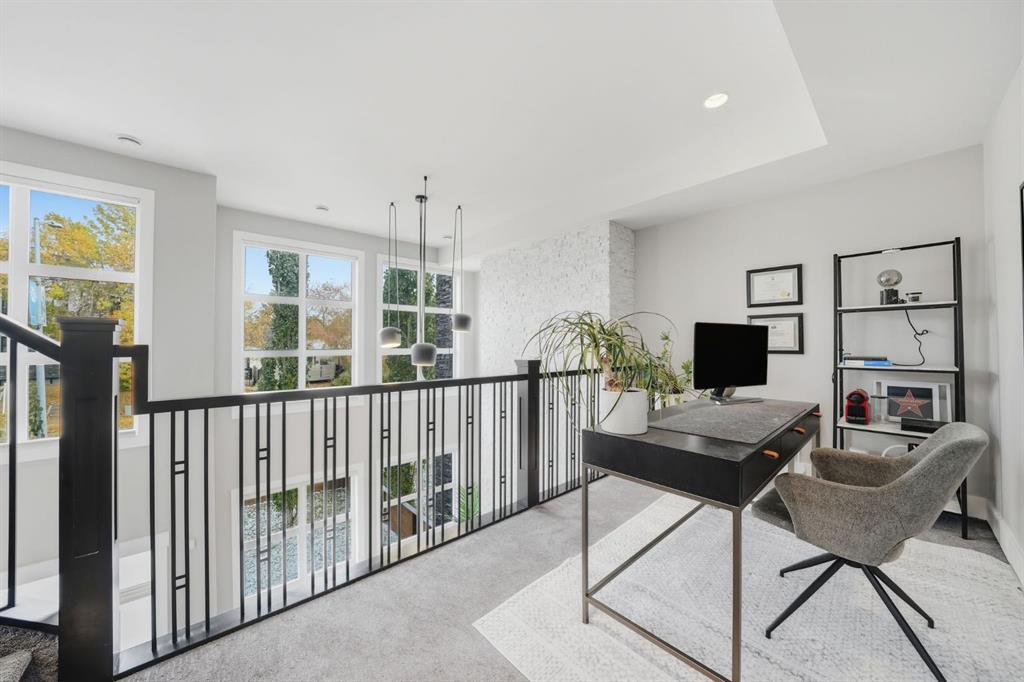 Breathtaking 3+2 bedroom offering over 3,400 sq ft f developed living space in the heart of sought-after South Calgary! The main level presents hardwood floors, high ceilings & is drenched in natural light, showcasing the living room with soaring ceiling & spectacular 2 story feature fireplace. The casual dining area provides ample space to host family & friends. A chef-inspired kitchen is tastefully finished with huge island/eating bar, an abundance of storage space & stainless steel appliance package. A 2 piece powder room & mud room complete the main level. The second level hosts a bright loft area that overlooks the living room, 2 bedrooms (both with walk-in closets), a 5 piece bath & laundry room with sink & storage. The private & sumptuous primary retreat encompasses the third level & features an inviting fireplace, access to a private balcony, 2 walk-in closets & lavish 6 piece ensuite with dual vanities, a relaxing freestanding soaker tub & separate shower. Basement development includes a large recreation room complete with wet bar – perfect for game or movie night. Two bedrooms & a 3 piece bath are the finishing touches to the basement. Further features include central air conditioning & wiring for data & sound. Also enjoy the south back yard with large patio, gas BBQ outlet & access to the double detached garage. This home is conveniently located just steps to vibrant Marda Loop & close to River Park, excellent schools, shopping, public transit & just minutes to the downtown core.