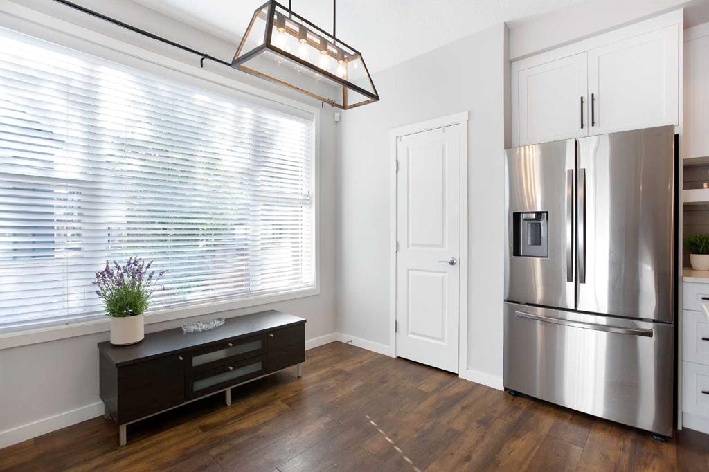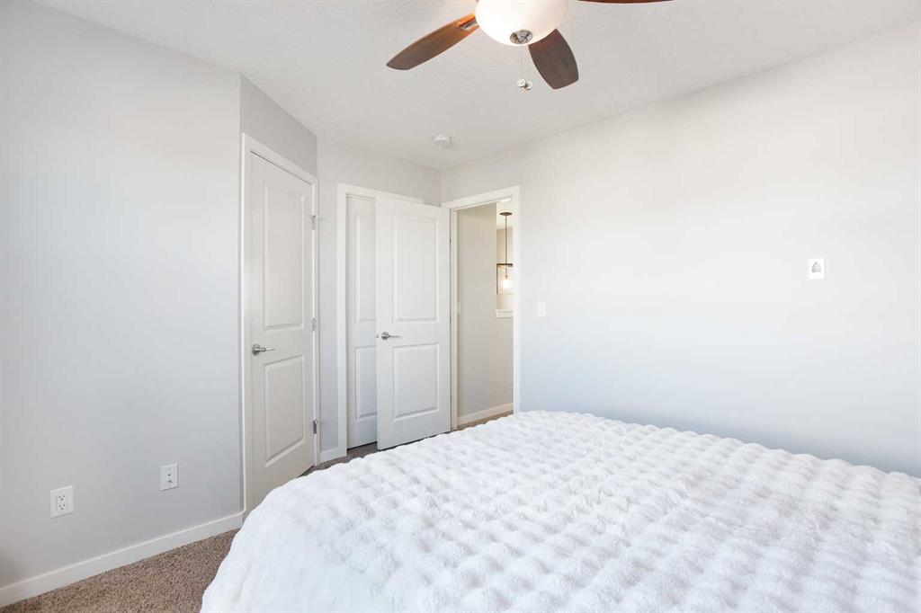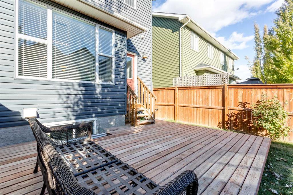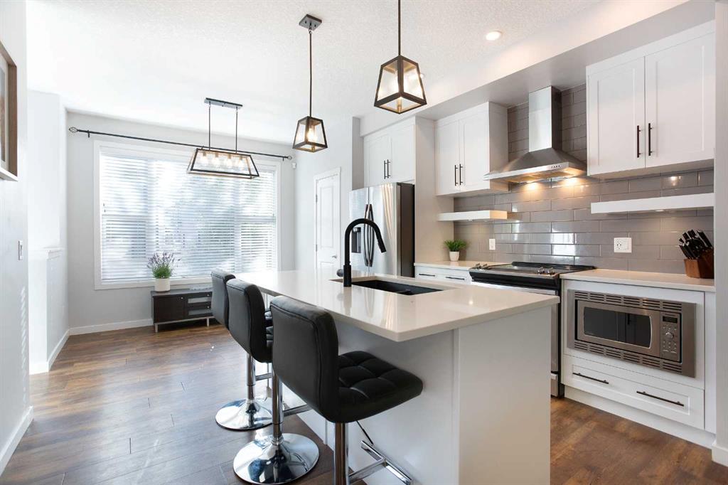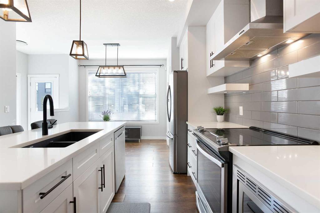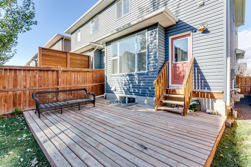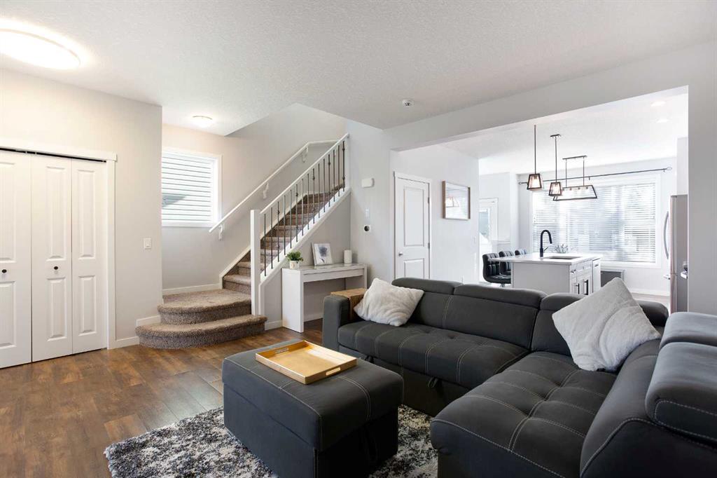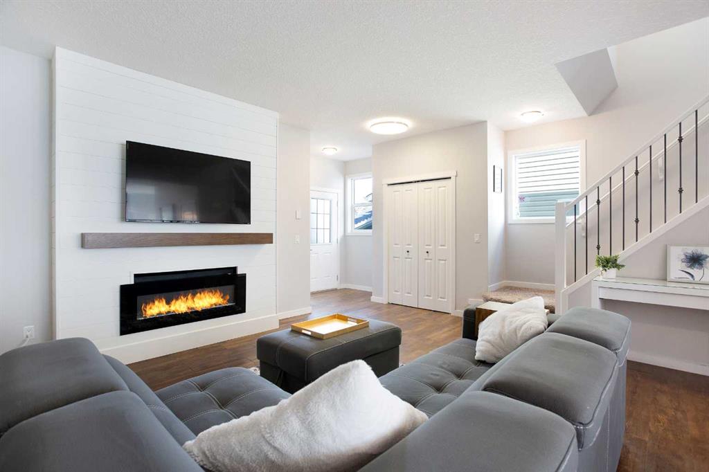 Step into this exquisite, move-in ready duplex nestled in the heart of Airdrie’s prestige Bayside community. Offering superb value with zero condo fees, this attached, two-story home showcases an undeniable pride of ownership across 1,370 sq ft of modern, bright living space. Upon entry, you’ll immediately appreciate the thoughtful design of the main floor, which boasts high ceilings, large windows, and an open-concept layout ideal for both everyday living and entertaining. The spacious living room invites relaxation, featuring a cozy electric fireplace framed by a chic shiplap floor-to-ceiling feature wall. This space opens directly into the stunning kitchen, a true chef’s delight. It’s equipped with modern finishes, ample white cabinetry, a convenient pantry, and centered around a magnificent quartz island illuminated by stylish pendant lighting. With clear sight lines, the kitchen seamlessly connects to your bright, contemporary dining area. A conveniently placed two-piece powder room completes the main level. The upper level continues the sophisticated aesthetic, providing a spacious primary retreat—a peaceful sanctuary complete with a walk-in closet and a spotless three-piece ensuite. This floor also hosts two additional great-sized bedrooms, a well-appointed four-piece bathroom, and the highly desirable designated upper-level laundry. Adding fantastic future value, the basement is pre-plumbed and ready for development, offering potential for a fourth bedroom, another full bathroom, or a spacious recreation room. Outside, the property features a single attached garage and a beautifully landscaped, fenced, sunny backyard with a deck and low-maintenance greenery. This home’s prime location is a key highlight, being just steps from the serene waterside pathways and offering easy access to schools, parks, and shopping. Don’t miss the chance to experience this perfect blend of comfort and community—it’s truly the ideal place to call home! Book your Showing today!