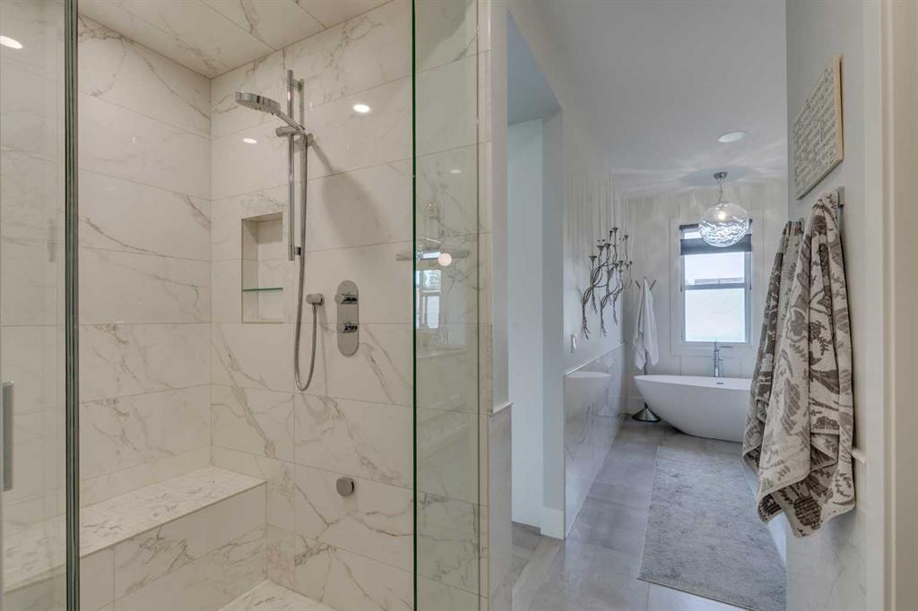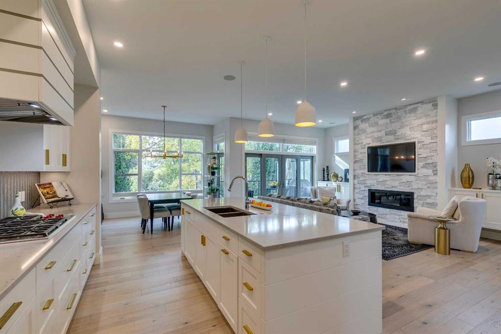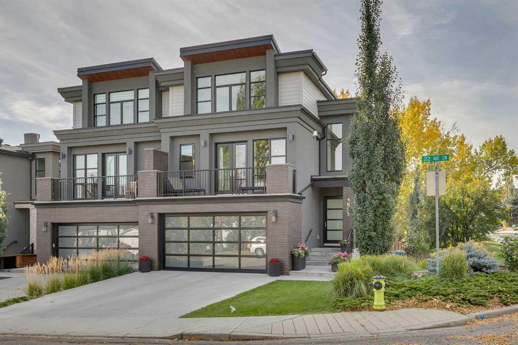 Welcome to an inner-city English garden living – with 2,847 sq ft of luxury situated in the vibrant community of Bankview. Offering 5 bedrooms throughout, this semi-detached walk-out home is perfect as an executive and/or family home. Built by luxury builder Grandscape Homes with superior finishes and completed by interior designer Denise Panagakos, this stunning home blends contemporary design with comfortable living finishes. The S & W facing main level has 10 ft ceilings, a two-storey front foyer and floor to ceiling windows, flooding the home with natural light. The gourmet kitchen has a large island with breakfast bar, pantry plus amazing storage. Top end appliances include a 5 burner Wolf Cooktop, dual Wolf wall ovens (one convection) and an integrated Sub-Zero fridge. The open living/dining area with gas fireplace leads to a south facing balcony through large sliding doors. On the 2nd floor, French doors lead to the private primary suite that occupies the entire level. Complete with a gas fireplace, a large walk-in closet, and a north facing balcony with downtown views. The 5-pc ensuite has a soaking tub, double vanity, a large steam-shower, and heated flooring. The 3rd level has 2 large bedrooms, both with walk-in closets. This floor also includes a 5-pc bathroom and a laundry room with sink and storage. On the 4th level is a very large loft bedroom/suite with downtown views and a 4-pc bathroom – perfect as a bedroom, office space or living area. The fully finished walk-out level has heated polished concrete floors, a 5th bedroom or office, and a 3-pc bathroom with an oversized walk-in shower. This level is the perfect entertaining area with a wet bar and wine room off the sitting area and walk-out covered patio. The sunny south facing back yard is professionally landscaped with plenty of shrubs and trees creating a private and quiet oasis. Backing directly onto a city park the home’s multiple outdoor living spaces will bring the outside in, either from the main living area balcony, or the large lower patio. Throughout the entire home you will find custom millwork cabinets providing ample storage. This clean air home has high efficiency heating/ventilation and includes central air conditioning. The double attached finished garage also has heated floors. Its minutes to downtown and walking distance to the shops, restaurants and amenities of either 17th Avenue or Marda Loop – also close to Mount Royal, Downtown Core, University of Calgary, Foothills Hospital Campus, SAIT & Kensington. Experience both quiet park and vibrant inner city living & book a showing with your realtor today!