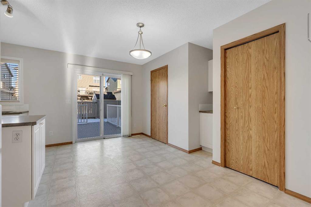 Perfect for first-time buyers or investors, this exceptionally well-maintained 2-storey home is located in one of the most desirable central pockets of Coventry Hills. The upper level features three bedrooms and a full bathroom with a newer bathtub/shower. The spacious primary bedroom easily accommodates a king-size bed and includes a large walk-in closet. The main floor welcomes you with a bright front living room showcasing beautiful hardwood floors, a convenient 2-piece bathroom, and a thoughtfully designed kitchen you’ll truly love. Offering an abundance of counter space and cabinetry, an island, pantry, and a charming nook—perfect for keys, a phone station, or your coffee setup—this kitchen is as functional as it is inviting. The basement is ready for your finishing touches and makes the process easy with roughed-in plumbing, two large windows, and one wall already completed—ideal for adding value exactly the way you want. This home is immaculately clean and pride of ownership is evident throughout. Recent updates include fresh interior paint (2023), a newly painted large back deck (July 2025), newer hot water tank, PEX plumbing, durable faux-wood blinds throughout, and new Class 4 shingles, siding, and eavestroughs (August 2025). The paved back alley adds extra convenience. Situated in one of the best locations in Coventry Hills, this home is centrally located and within walking distance to six schools, making it an excellent long-term investment and a fantastic place to call home. Must be viewed to be fully appreciated. Furnace was just cleaned & serviced Jan. 2026. *** OPEN HOUSE- SAT. Jan. 24 (1:30-2:30pm)***