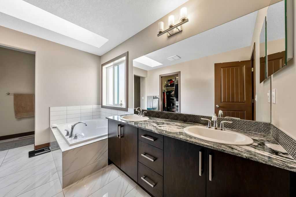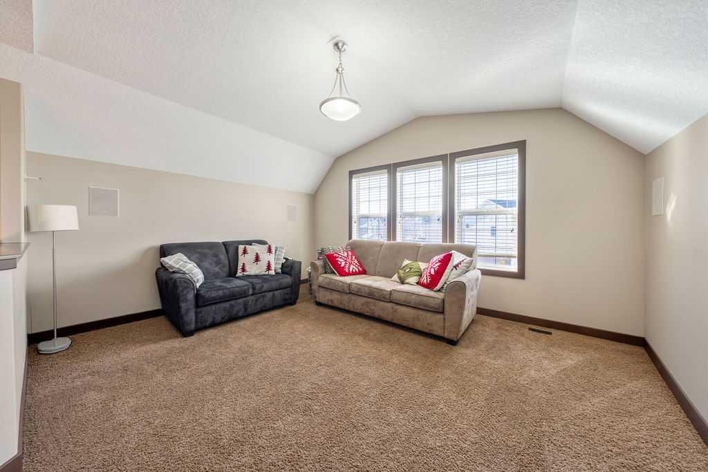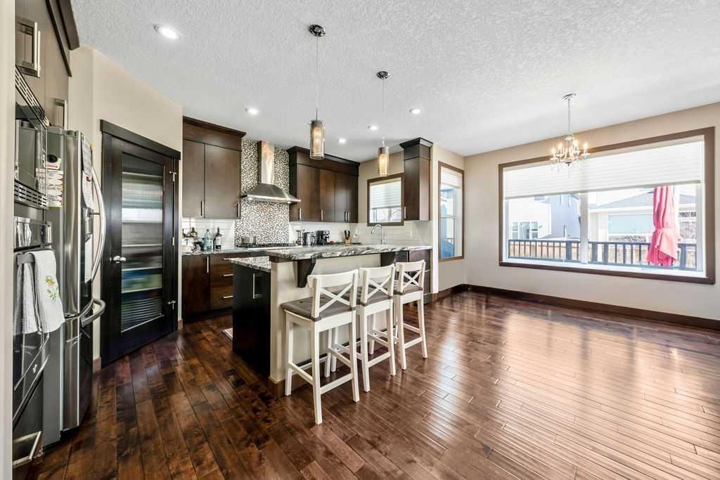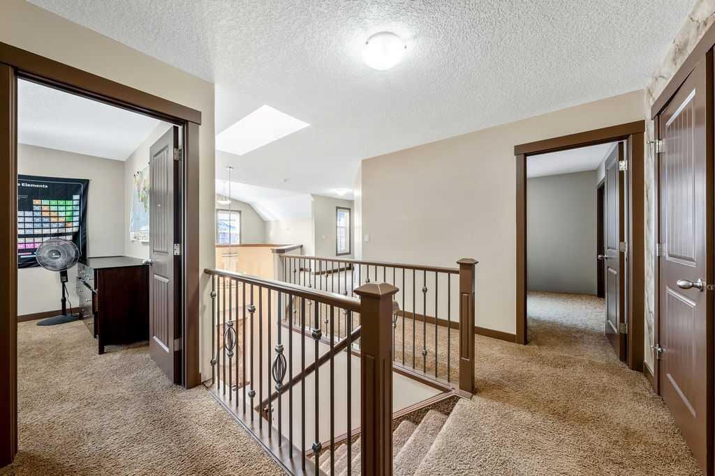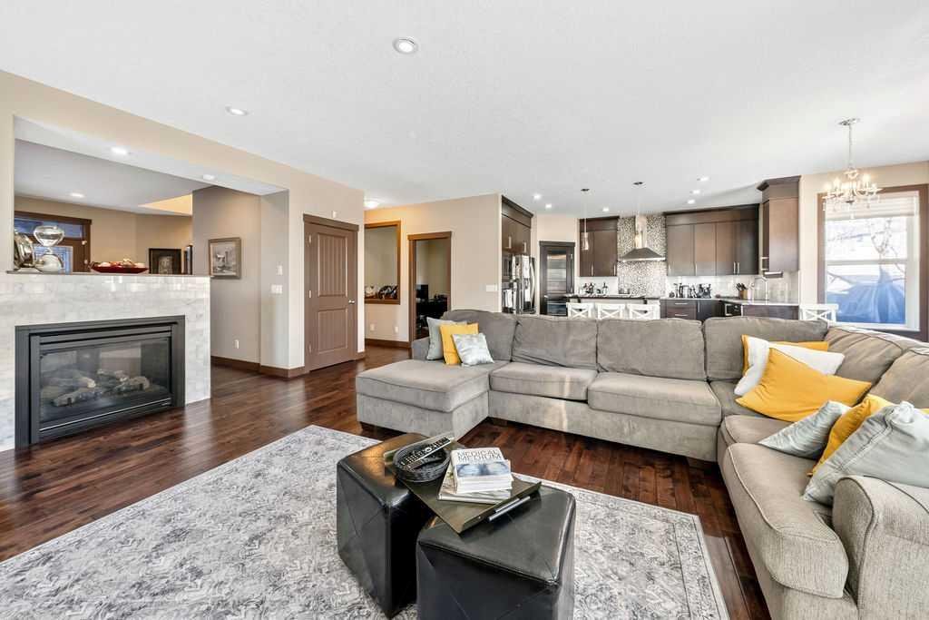 Welcome to your 2555 sqft home nestled on a quiet cul-de-sac in one of the most sought after parts of Cranston, just steps to parks and schools. This estate home features a Southeast facing back yard, 3 spacious bedrooms, and 2.5 baths. This bright, open concept home showcases tasteful finishings throughout starting with the gourmet chef’s kitchen, featuring gas range and all stainless appliances, a large quartz island, plenty of full height cabinetry and a spacious pantry. Enjoy hosting family and friends in the large dining and living rooms adjacent to the kitchen, buffered by the beautiful 2-sided fireplace. This home features 9 foot ceilings throughout and an abundance of natural light. The main floor office is perfect for those that need a work-from-home space. Upstairs features a large primary bedroom with a spa ensuite with separate shower, free standing soaker tub, dual vanity, and walk-in closet. Two addtional large bedrooms, 4 pc bath, massive bonus room, and laundry room complete the upper level. Lower level awaits your ideal development, also with 9 foot ceilings (pricey upgrade!), roughed-in plumbing for a bathroom, and large windows. The fully fenced extra wide (pie lot) back yard will impress, with a large deck, gas-line for barbecuing, and large concrete pad on the west side… ideal for games of pickup basketball or ball hockey! Front and back yards are very low maintenance landscaping. The location of this home is outstanding, just a couple of blocks from parks and walking distance to two excellent elementary schools. Cranston features an incredible community centre with tennis courts, water park, outdoor rinks, walking paths, as well as plenty of shopping and other amenities, and is very close to the South Health Campus. This home is conveniently located just 2 minutes to the 212 Ave exit onto HWY 2 for super quick access in and out of the community.