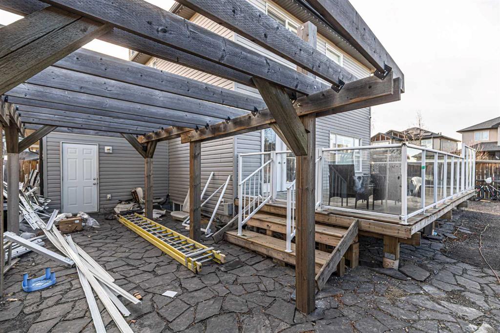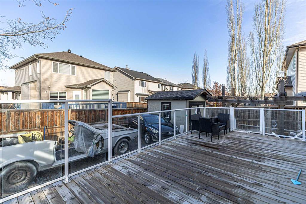 Motivated Seller! Welcome to West Creek in Chestermere! Tons of upgrades in this fabulous home on a CORNER lot. All the additional parking benefits but NO sidewalks to shovel plus RV Parking! This custom 3 bedroom home boasts AIR CONDITIONING (commercial grade), California Shutters, Sprinkler System (front & back) and more! The open concept main floor has an inviting living area w/ maple hardwood floors, gas fireplace & the well furnished kitchen w/ walk through pantry has recently upgraded SS appliances incl gas stove. French doors open to the back deck and a generous sized yard w/ a pergola over the stone patio, big shed & easy access RV parking. The attached heated oversized garage is immaculate. Triple garage doors w/ another tandem oversized stall. Compressor in the garage INCLUDED. New roof in 2019. Incredible neighbors! Close to walking paths, the pond, Park, Rainbow Creek Elementary School & more! The basement is fully finished, Already RENTED OUT $1000.