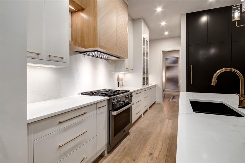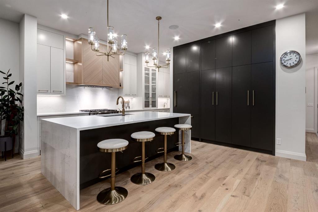 Experience the pinnacle of luxury living in this exceptional “ELLE Decor” residence by Willix Developments, where unparalleled craftsmanship meets timeless design. Boasting over 4,000 square feet of meticulously developed living space, this sophisticated home is perfectly positioned on a generous lot with a sunny, south-facing backyard, offering privacy, elegance, and space for outdoor entertaining or relaxation. A detached, heated triple garage adds convenience, while the vibrant heart of Marda Loop, with its eclectic shops, cafĂ©s, and cultural offerings is just a short stroll away, blending urban lifestyle with the tranquility of a private retreat. From the moment you enter, the home impresses with its soaring ceilings on all three levels, extensive exterior brick detailing, and a thoughtfully designed floor plan. Natural light pours through large windows, highlighting every detail of the refined interior, from designer light fixtures and striking wallpaper accents to exquisite millwork, tile detailing, and wide-plank white oak hardwood floors. The seamless flow of the living spaces creates an inviting atmosphere, ideal for both everyday family life and sophisticated entertaining. The chef-inspired kitchen is a statement of modern luxury, featuring a full Miele appliance package, sleek custom cabinetry with ample storage, quartz countertops and backsplash, and a generous center island perfect for meal preparation or casual gatherings. Adjacent spaces flow effortlessly into the dining and living areas, anchored by a gas fireplace framed by custom-designed built-ins that create warmth and intimacy. The private primary suite is a true sanctuary, complete with a spa-inspired steam shower, a spacious dressing area, and a coveted makeup area. Three additional bedrooms are generously proportioned, providing comfort for family or guests. For productivity and wellness, the home offers a main-level office and a lower-level gym, along with a temperature-controlled glass wine display for the discerning collector. Radiant in-floor heating in the basement ensures comfort year-round, while thoughtful touches throughout emphasize quality and attention to detail. This residence is more than just a home – it is a lifestyle. Imagine relaxing on the sunny patio, or walking to nearby cafĂ©s, boutique shops, and local entertainment. Excellent schools, parks, and a community center are all within easy reach, making this location ideal for families seeking convenience without compromising sophistication. The combination of indoor luxury and outdoor living creates a perfect harmony that caters to both relaxation and vibrant social living. Every aspect of this home reflects refinement, quality, and attention to detail, providing an unmatched living experience in one of the city’s most desirable locations. From morning coffee in the kitchen to evening gatherings by the fireplace, every day is elevated by the thoughtful design, premium finishes, and enviable lifestyle this property affords.
