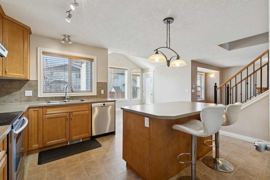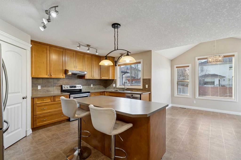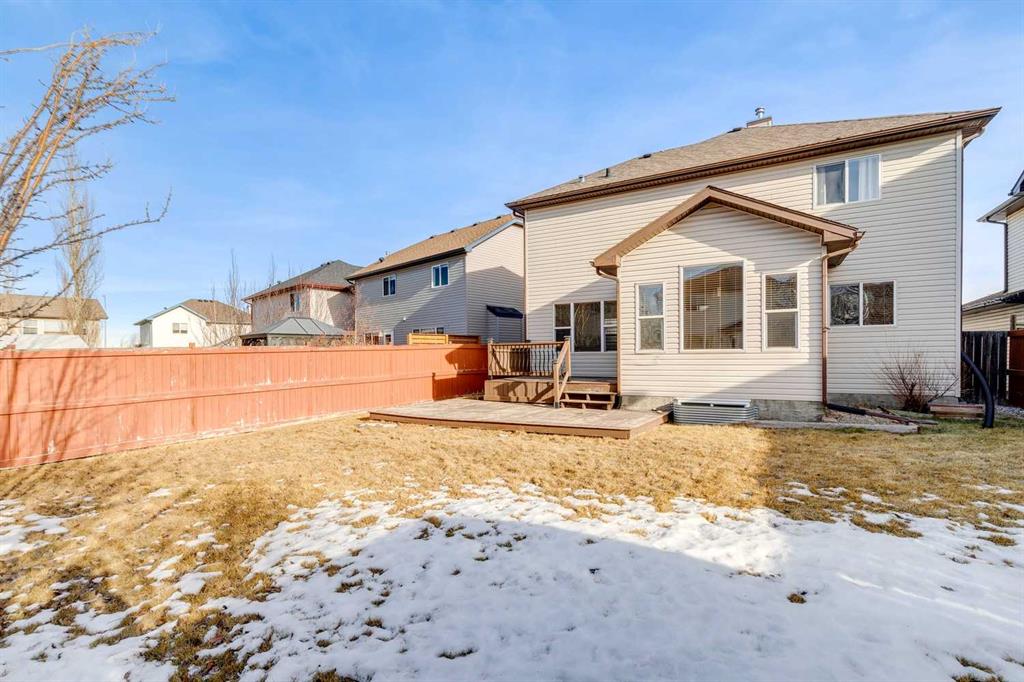 Beautiful family home in a sought-after Okotoks neighbourhood! Perfectly located on a quiet street close to schools, parks, and pathways, this home offers exceptional space and style. The open main floor features a cozy gas fireplace, a chef’s kitchen with full-height cabinets, large island, and a bright dining area with vaulted ceilings and access to the sunny backyard. Upstairs you’ll find a spacious bonus room and three generous bedrooms, including a primary suite with walk-in closet and relaxing ensuite. The basement adds even more living space with a rec room, fourth bedroom, and rough-in for a future bathroom. Move-in ready, and ideal for family living!