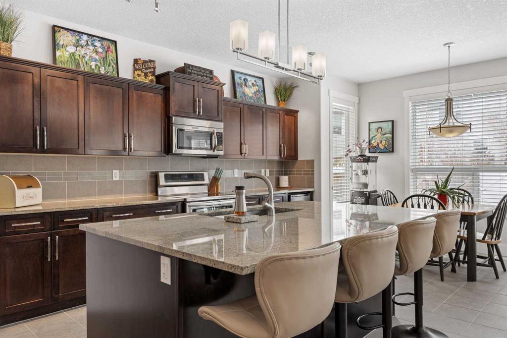 Situated on a beautifully landscaped 7,922 SQ.FT. lot, the impressive curb appeal sets the tone the moment you arrive. Inside, the well-planned main floor offers a private front office ideal for working from home, a formal dining room for entertaining, and a bright OPEN CONCEPT living space that effortlessly brings everyone together. The BEAUTIFUL kitchen features full-height cabinetry, GRANITE countertops throughout, upgraded KitchenAid appliances, a large dining nook, and thoughtful extras like a floor sweep and built-in Vacuflo. The BRIGHT living room is anchored by a cozy gas fireplace & offers the perfect setting for entertaining friends and family.