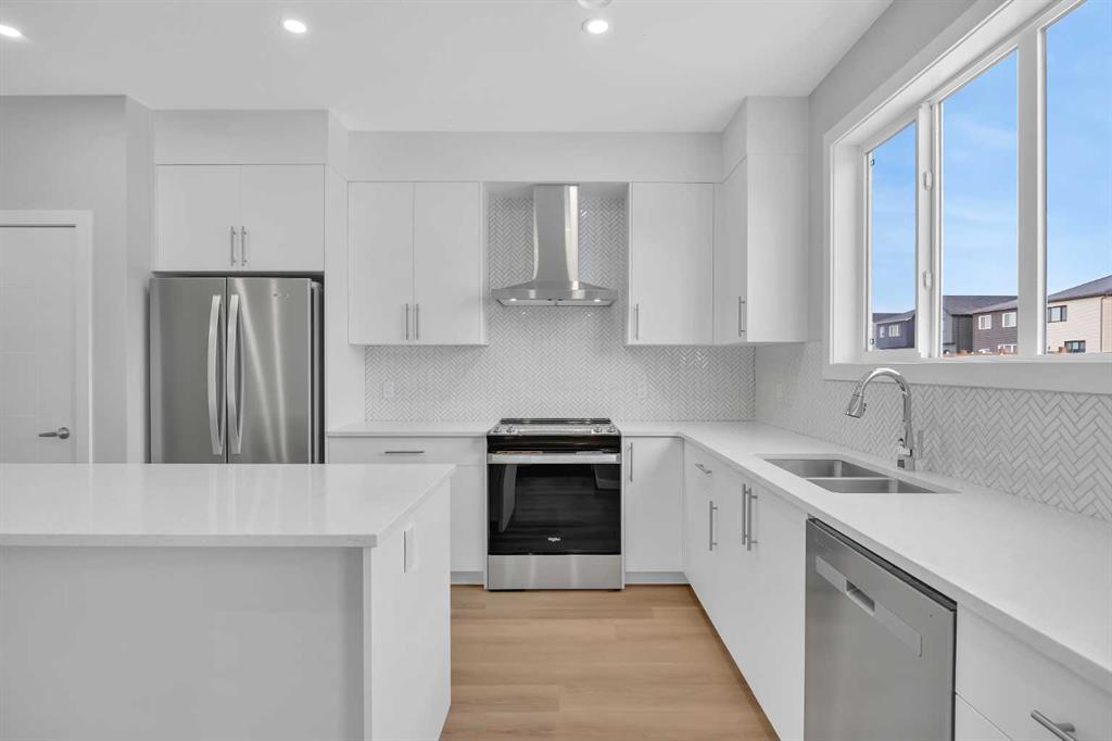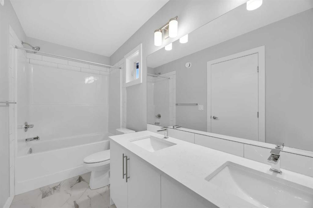 Welcome to The Edward by Partners Homes, a brand new quick possession in Logan Landing featuring a rare fully developed two-bedroom, two-bathroom legal basement suite with a private side entrance. Designed with flexibility in mind, this home offers an exceptional opportunity for multi-generational living or meaningful rental income in a growing Calgary community. The main level is bright and open, anchored by a spacious kitchen with a large central island, generous storage, and clean modern finishes that feel both timeless and functional. The dining and living areas flow seamlessly for everyday comfort and easy entertaining. At the front of the home, a versatile flex room provides the perfect space for a home office, playroom, or hobby area, while a full main-floor bathroom adds everyday convenience. Upstairs, the primary bedroom is a true retreat, complete with a walk-in closet and a private ensuite featuring dual vanities. Two additional bedrooms, a generous bonus room, and upper-level laundry round out a layout that works beautifully for families. What truly sets this home apart is the legal basement suite. Unlike the typical suite layout, this one offers two bedrooms and two full bathrooms, creating a unique level of privacy and livability for tenants or extended family. With its own kitchen, comfortable living area, separate mechanical room, and private entrance, it functions as a complete secondary home within the property. Located in Logan Landing, surrounded by parks, pathways, and access to the Bow River, The Edward offers the perfect balance of outdoor lifestyle and everyday convenience. Whether you’re looking for a mortgage helper, space for family, or a turn-key investment, this is a rare suite opportunity in a brand new community.