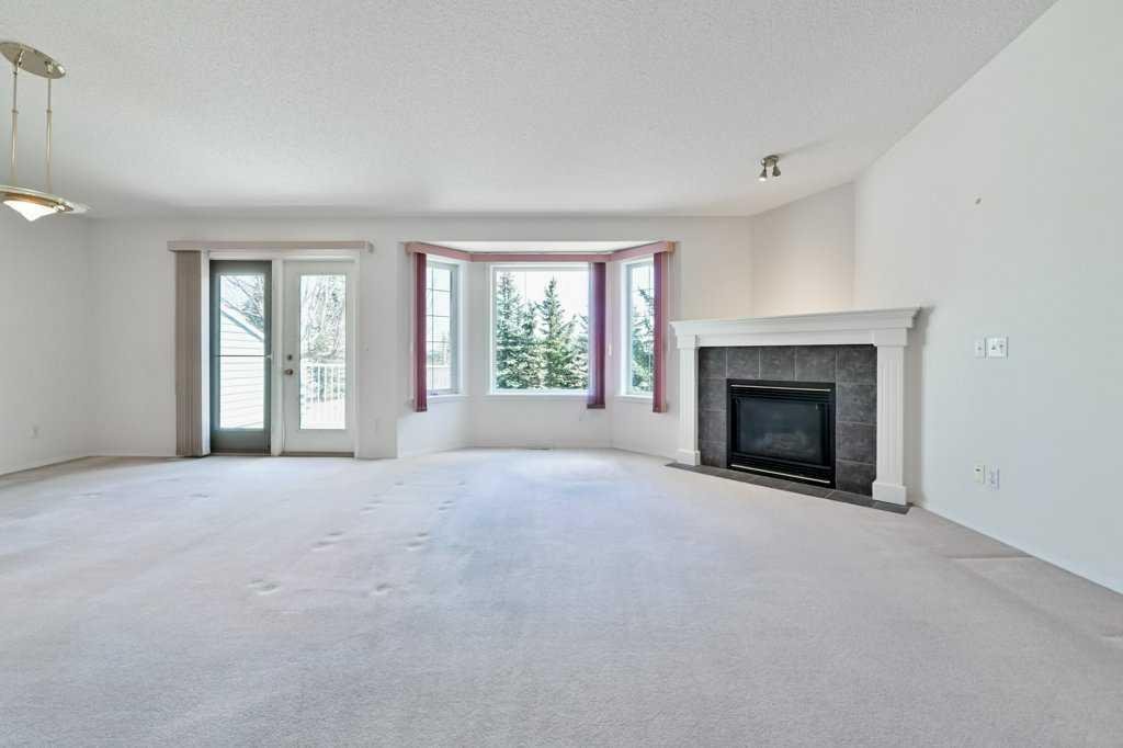 Located in Valley Ridge, this reverse bungalow-style villa in the Highlands of Valley Ridge offers a double-attached garage, three full bathrooms, new furnace and decking in 2025 and 1,869 sq ft of developed living space. The main entry opens to a spacious foyer with access to the lower level, featuring a bright family room with walkout to a covered patio, a full bathroom, mechanical room, and ample storage. The upper floor includes a generous kitchen with corner pantry, a dining area with access to a sunny deck and a large living room with a bay window and corner fireplace. The primary bedroom is well sized with a walk-in closet and a three-piece ensuite. A second bedroom and a four-piece bathroom provide flexibility for guests or family, with laundry conveniently located on this level. The home is well maintained and presents a great opportunity for a buyer to add their own personal touches. Valley Ridge is an established community with an active association offering events such as Music in the Garden, Yoga in the Park, and a community garden. Residents enjoy access to parks and pathways, with quick connections to Stoney Trail, downtown Calgary, and all quadrants of the city, while the mountains are approximately 45 minutes away.