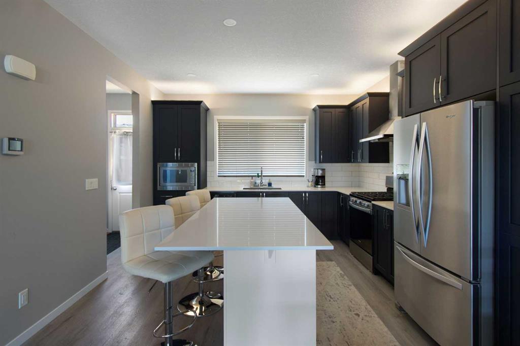 This immaculate one-owner semi-detached home, built in 2021, perfectly blends modern design, thoughtful upgrades, and everyday comfort. Step inside to a bright, open-concept main floor featuring a chef-inspired kitchen with gas range, extended 8’ island, over-cabinet lighting, and a custom pantry built beside the fridge — ideal for organization and extra storage. The spacious living and dining areas flow seamlessly together, perfect for family dinners or entertaining friends.