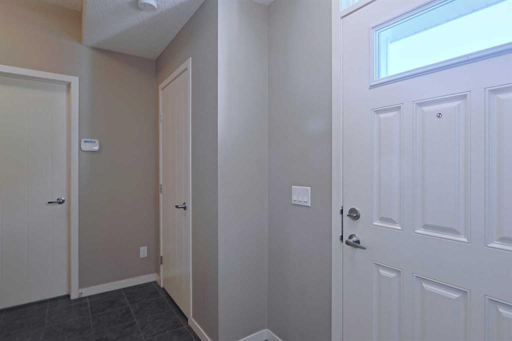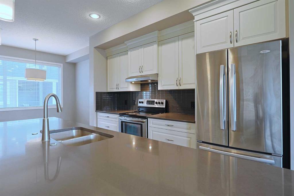 Don’t miss out on this chance to make your new home in this stylish townhome in THE ELEMENTS by Cedarglen, here in the popular family community of Panorama Hills. Available for quick possession, this fantastic 3 storey condo enjoys hardwood floors throughout, designer kitchen with quartz countertops, 2 bedrooms, 2.5 bathrooms & 2 car garage for your exclusive use. Complemented by 9ft ceilings, you’ll love the open concept main living area on the 2nd floor with its rich hardwood floors & big windows, South-facing living room with alcove for your home office, dining area with access onto the covered balcony & sleek kitchen with huge centre island & Frigidaire/Whirlpool stainless steel appliances. On the top floor there are 2 big bedrooms – each with walk-in closets & full ensuites. The ensuite in the North-facing bedroom has a shower/tub combo & the South-facing bedroom has partial downtown views & ensuite with walk-in shower. Between the bedrooms is a large walk-in closet & another closet for your linens & towels. On the ground floor is the laundry/utility room with stacking Maytag washer & dryer, & access into the 2 car garage. Additional features include Hunter Douglas blinds, tankless hot water system, quartz counters in the upper level bathrooms, natural gas line for a BBQ on the balcony, central vacuum system & front patio. Monthly condo fees include grass cutting & snow removal, & pets are okay on board approval. A park with sports court & playground is walking distance from your front door, & with its prime location you’ve got easy access to area schools & shopping, Country Hills Town Centre retail complex, VIVO Centre, Deerfoot & Stoney Trails.