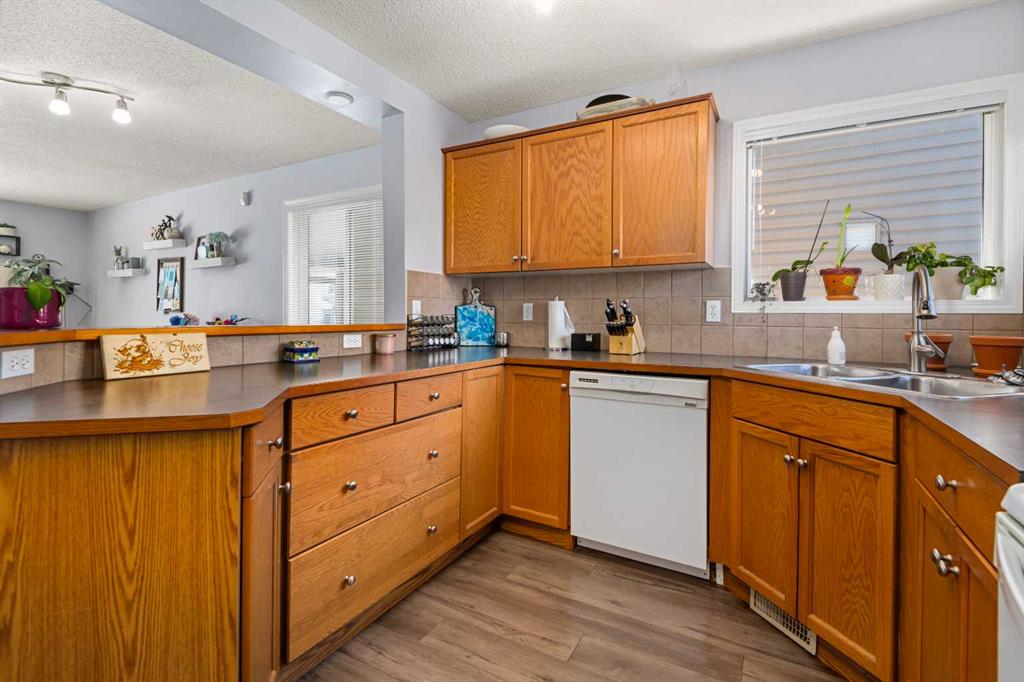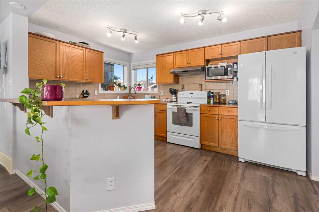 AMAZING PRICE on this charming, well cared for home, located in the HIGHLY SOUGHT-AFTER, FAMILY-FRIENDLY COMMUNITY of SAGEWOOD. Just steps from SCHOOLS, PARKS, PLAYGROUNDS, and SCENIC WALKING/BIKING PATHS, and only minutes from shopping, groceries, and restaurants, this location offers the PERFECT BALANCE OF CONVEIENCE & COMMUNITY LIVING. This well-maintained home features 3 bedrooms and 1.5 bathrooms, along with a large backyard, a two-tiered deck, and a double detached garage with alley access. The bright and spacious main floor offers an open-concept layout with large windows that flood the home with natural light, complemented by durable laminate flooring throughout.