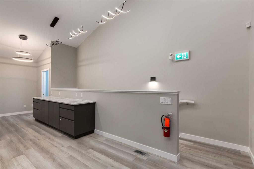 A bright, welcoming foyer finished w/LUXURY VINYL PLANK FLOORING, NEUTRAL PAINT + MODERN LIGHTING sets the tone, while built-in cabinetry enhances organization + efficiency. The first private office sits immediately to your left – ideal for a RECEPTION OR EXECUTIVE OFFICE – while the spacious bullpen further down the hall accommodates multiple desks and is complemented by a full wall of sleek cabinetry. The adaptable design allows the front office to function as a RECEPTION WITH WAITING AREA, or the rear bullpen to serve as a DEDICATED CLIENT LOUNGE, complete w/an accessible two-piece bathroom for clients + staff.