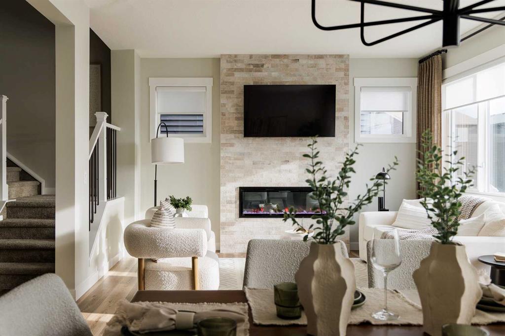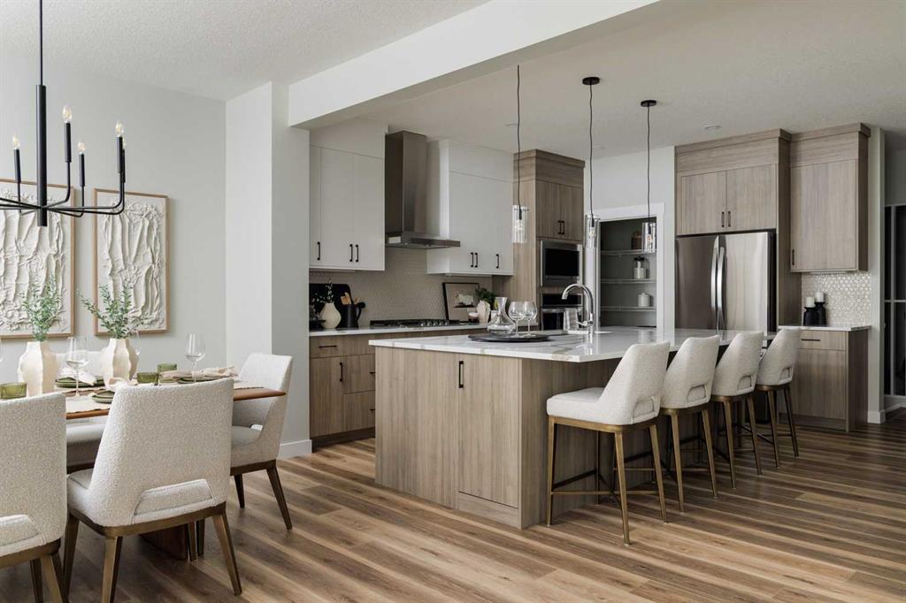This quick-possession front-drive home offers a well-balanced layout with upgraded finishes and strong everyday functionality in Glacier Ridge. Featuring 2,284 sq.ft., 3 bedrooms, and 2.5 bathrooms, the main floor is finished with 9’ ceilings, luxury vinyl plank flooring, a gourmet kitchen with quartz countertops, stainless steel appliances including a gas cooktop and built-in wall oven, a flush eating bar, and a walk-in pantry. The dining area and great room are bright and open, highlighted by an electric fireplace, while a dedicated main floor office adds practical work-from-home space. Upstairs includes a spacious bonus room, a large primary bedroom with walk-in closet and ensuite featuring tiled shower walls, two additional bedrooms each with walk-in closets, a generous laundry room, and upper-level railing. Added highlights include iron spindle railing on both levels, extra side and basement windows, permanent soffit lighting, a side entry, gas line for BBQ, an 8’ front entry door with transom, and a 9’ basement foundation offering future development potential. Located in Glacier Ridge, a growing northwest Calgary community with parks, pathways, and convenient access to major routes, this home includes the confidence of a full builder warranty. Book your showing today. (Interior photos are of a showhome with similar layout and may not fully represent the property for sale)