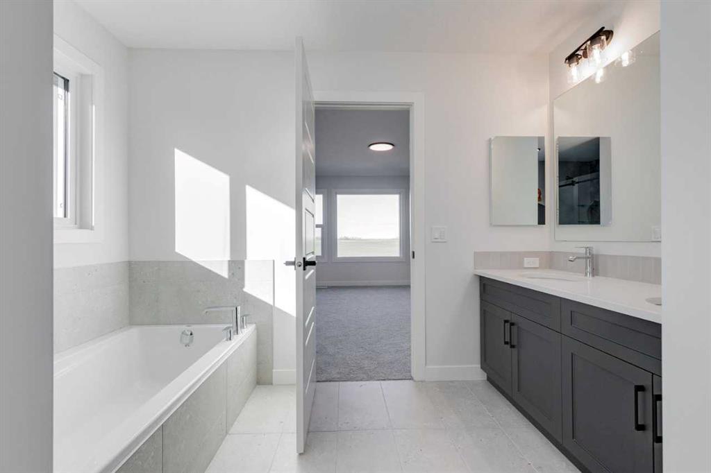 The Amber offers refined design and standout features on a desirable wide lot with a 3-car garage. A side entrance adds flexibility, while the main floor bedroom and full bath with walk-in shower provide convenience for guests. The stunning open-to-above great room centers around a gas fireplace with maple mantle, surrounded by many windows for an airy, light-filled space. The executive kitchen includes built-in stainless steel appliances, gas cooktop, and fridge with water & ice, plus a full spice kitchen with gas range for added functionality. Upstairs, retreat to a luxurious 5-piece ensuite with walk-in shower, soaker tub, and quartz countertops. Tile flooring in all bathrooms and the laundry room, plus elegant maple railings, complete this impressive home. This home is built by a trusted builder with over 70 years of experience, and showcases on-trend, designer-curated interior selections tailored for a home that feels personalized to you. This energy-efficient home is Built Green certified and includes triple-pane windows, a high-efficiency furnace, and a solar chase for a solar-ready setup. With blower door testing that can offer up to may be eligible for up to 25% mortgage insurance savings, plus an electric car charger rough-in, it’s designed for sustainable, future-forward living. Featuring a full package of smart home technology, this home includes a programmable thermostat, ring camera doorbell, smart front door lock, smart and motion-activated switches—all seamlessly controlled via an Amazon Alexa touchscreen hub. Photos are representative.