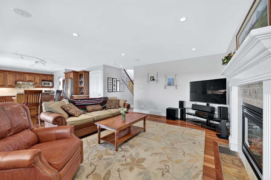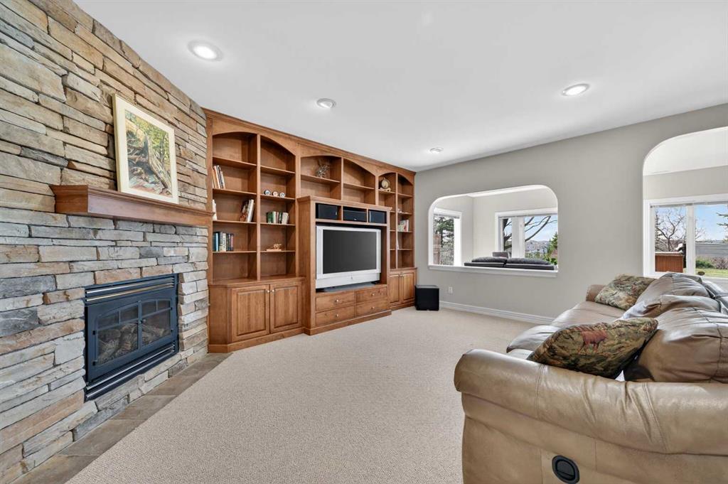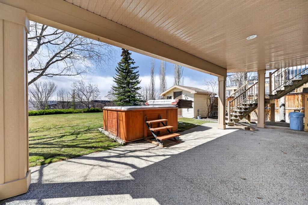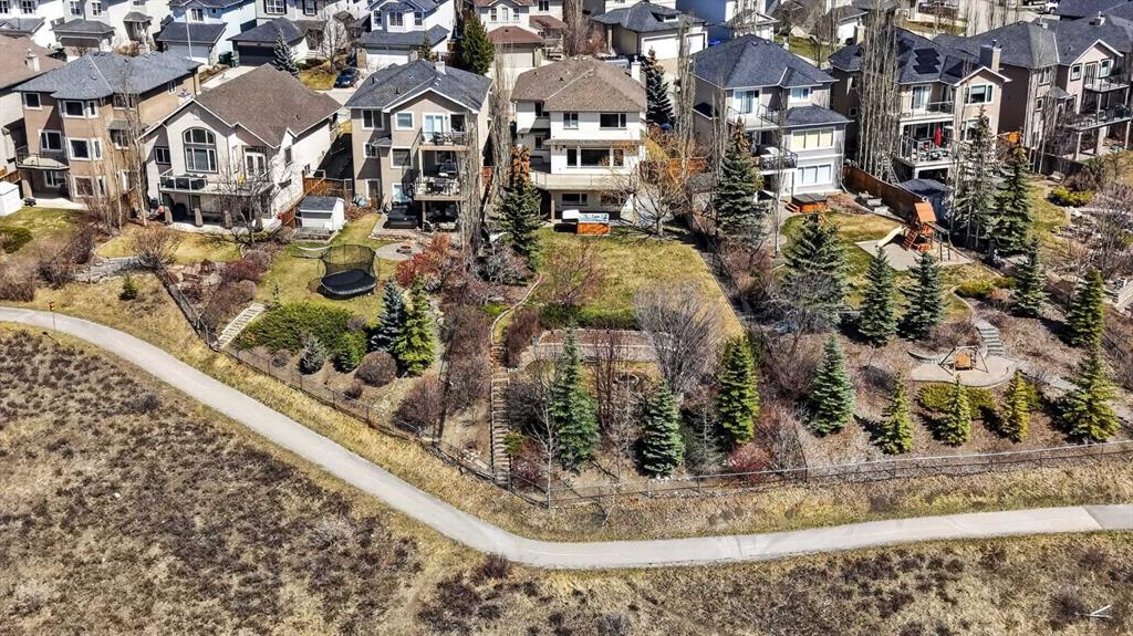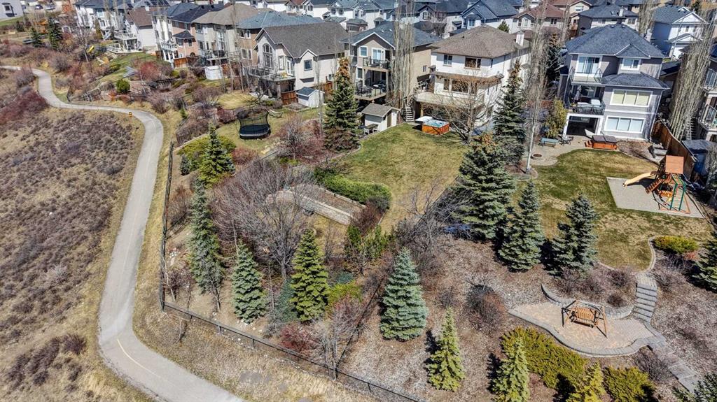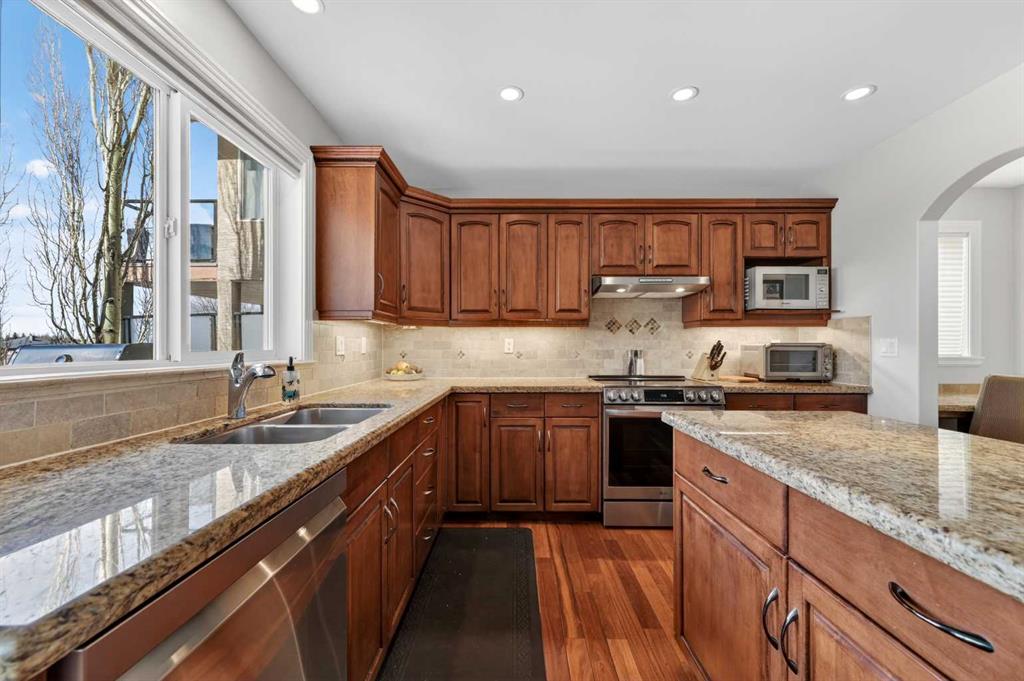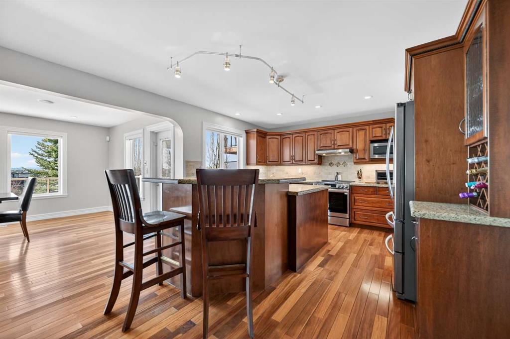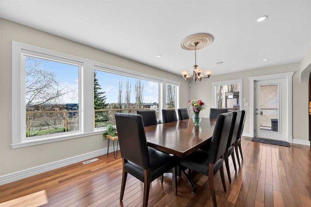 Offering over 3,700 sq. ft. of developed living space, this home has been extensively improved, including a substantial 2009 addition that enhanced the main living areas, expanded the primary suite and ensuite, and created a larger walkout basement—providing exceptional space and functionality for today’s lifestyle. The main floor features a bright and open layout with rich hardwood flooring, a spacious living room with gas fireplace, and a well-appointed kitchen complete with granite countertops, stainless steel appliances, and a large central island. A dedicated main floor office and a custom mudroom add valuable everyday convenience. A true highlight of the home is the expansive rear dining area addition, surrounded by large windows that capture stunning ravine, mountain and skyline views—creating an exceptional space for both everyday living and entertaining. Upstairs, the generously sized primary retreat offers beautiful views, a walk-in closet, and a well-appointed ensuite with a soaker tub and separate shower. Two additional bedrooms, a full bathroom, and the convenience of an upper-level laundry room complete the second floor. The fully developed walkout basement provides outstanding additional living space, featuring a large family room with custom built-ins and fireplace, a recreation room, fourth bedroom, full bathroom, and a versatile workshop area.Step outside to your private, expansive southwest facing backyard oasis featuring terraced landscaping with mature trees, retaining walls, multiple seating areas, a covered patio, an upper deck with glass railing, and a hot tub. Perfect for entertaining friends and family all year long! Incredible ravine, city and mountain views, direct access to the pathway system and no rear neighbors behind. This is the type of backyard setting rarely found in Calgary! Additional updates include Vinyl Decking (2023), Rear Deck 2009), Hot Water Tank (2019), and LG Electric Range & Dishwasher (2024). This is a rare opportunity to own a walkout home on one of Royal Oak’s most desirable locations.
