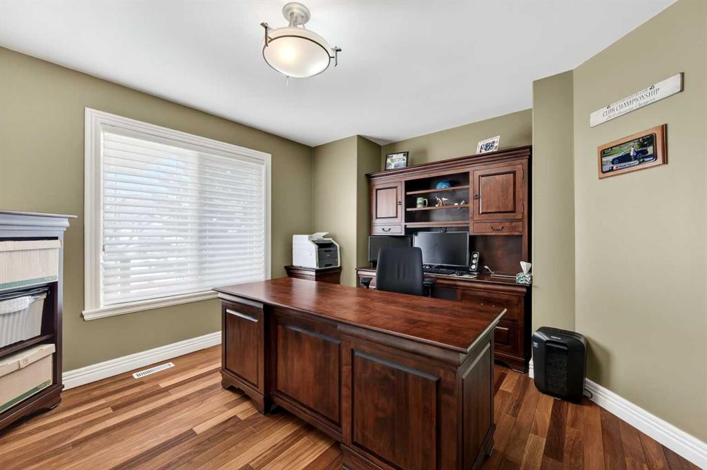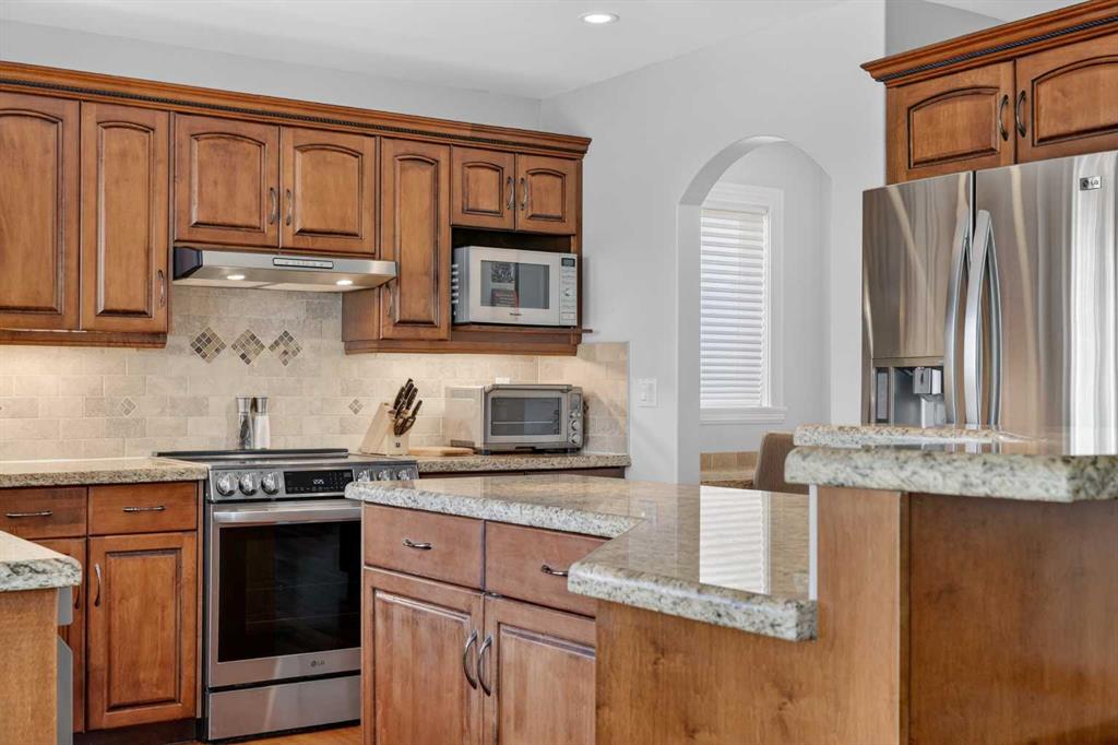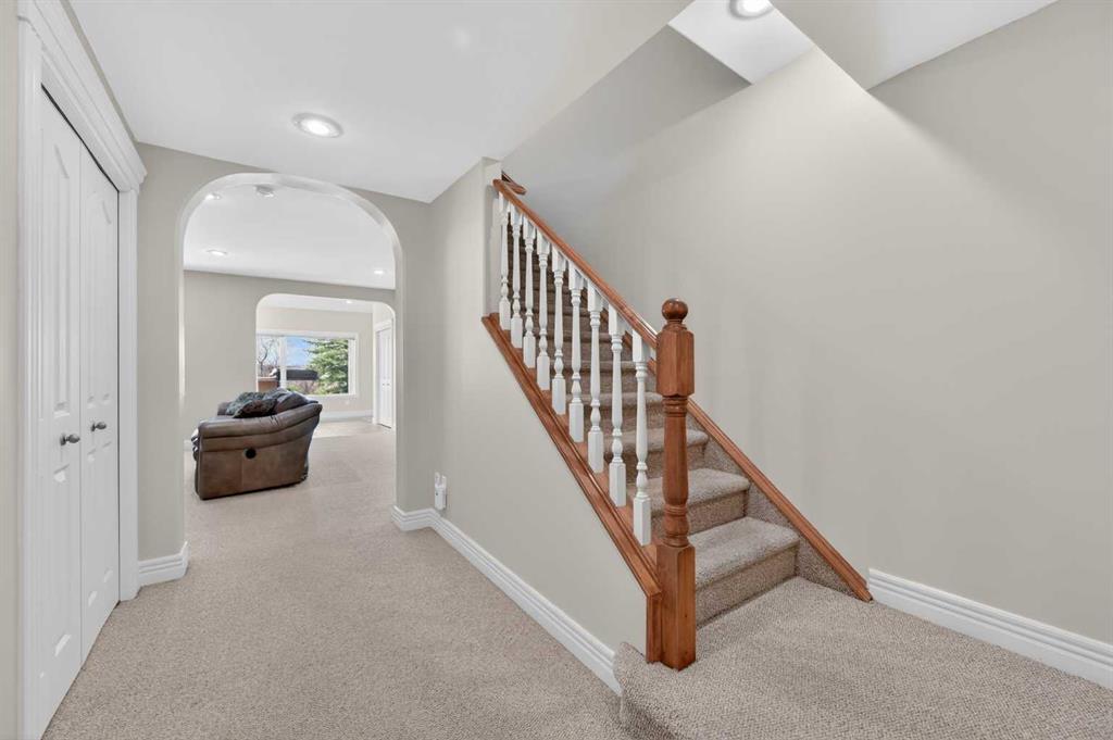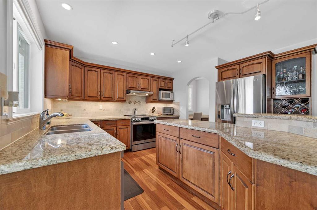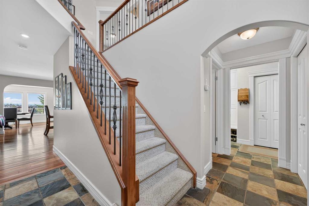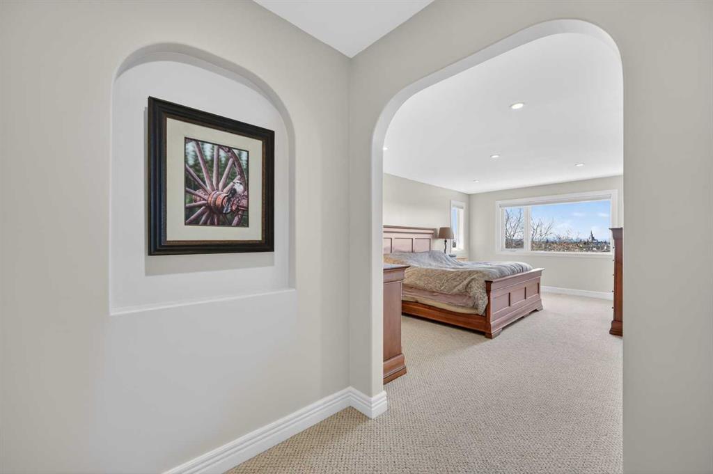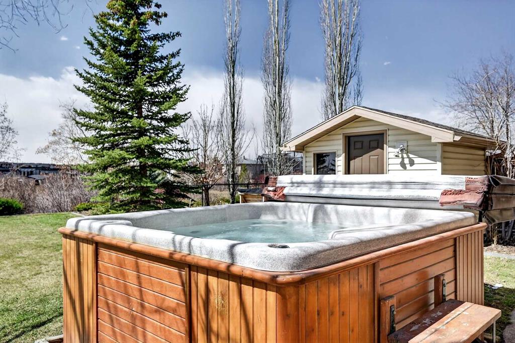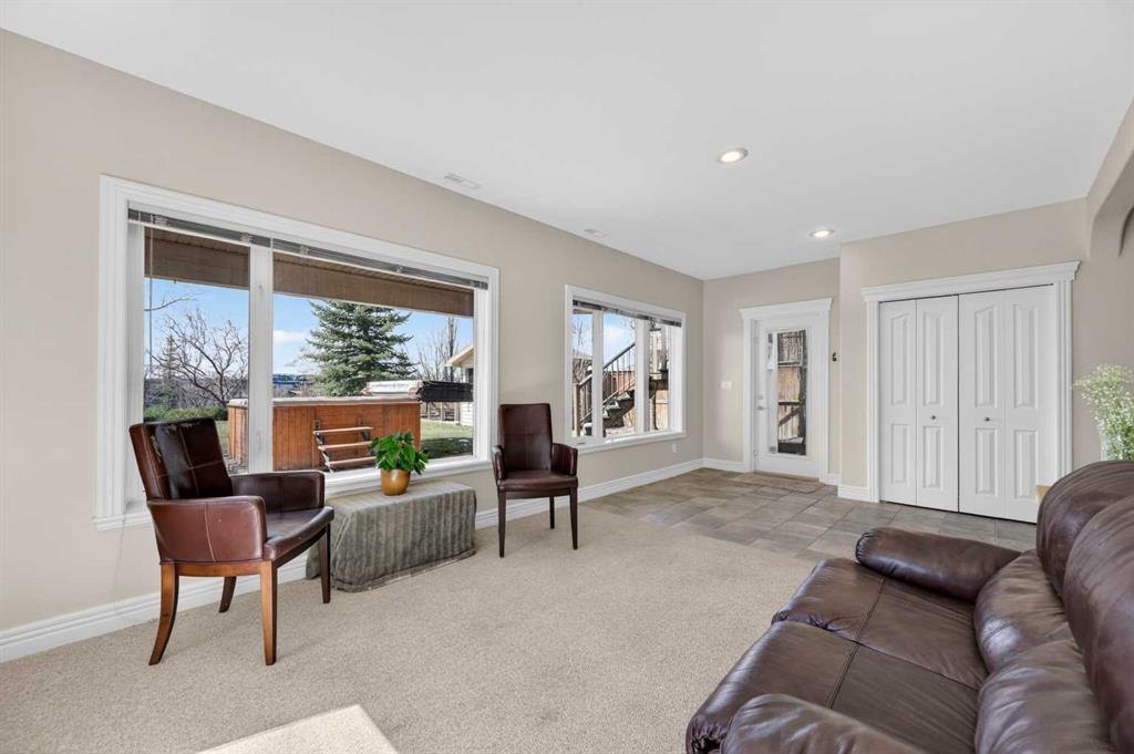 Offering over 3,700 sq. ft. of developed living space, this home has been extensively improved, including a substantial 2009 addition that enhanced the main living areas, expanded the primary suite and ensuite, and created a larger walkout basement—providing exceptional space and functionality for today’s lifestyle. The main floor features a bright and open layout with rich hardwood flooring, a spacious living room with gas fireplace, and a well-appointed kitchen complete with granite countertops, stainless steel appliances, and a large central island. A dedicated main floor office and a custom mudroom add valuable everyday convenience. A true highlight of the home is the expansive rear dining area addition, surrounded by large windows that capture stunning ravine, mountain and skyline views—creating an exceptional space for both everyday living and entertaining. Upstairs, the generously sized primary retreat offers beautiful views, a walk-in closet, and a well-appointed ensuite with a soaker tub and separate shower. Two additional bedrooms, a full bathroom, and the convenience of an upper-level laundry room complete the second floor. The fully developed walkout basement provides outstanding additional living space, featuring a large family room with custom built-ins and fireplace, a recreation room, fourth bedroom, full bathroom, and a versatile workshop area.Step outside to your private, expansive southwest facing backyard oasis featuring terraced landscaping with mature trees, retaining walls, multiple seating areas, a covered patio, an upper deck with glass railing, and a hot tub. Perfect for entertaining friends and family all year long! Incredible ravine, city and mountain views, direct access to the pathway system and no rear neighbors behind. This is the type of backyard setting rarely found in Calgary! Additional updates include Vinyl Decking (2023), Rear Deck 2009), Hot Water Tank (2019), and LG Electric Range & Dishwasher (2024). This is a rare opportunity to own a walkout home on one of Royal Oak’s most desirable locations.