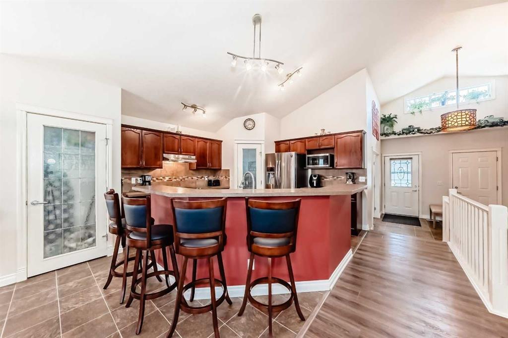 Welcome to 187 Hawkmere View, a 1600 ft2 bungalow! You will enjoy the lovely covered front porch where you can sip your morning coffee and catch up with the neighbours. The property is located on a quiet street backing on to an acreage with lots of trees and green space. As you come into the home there is a large entryway with plenty of space to drop your bags and remove your coat and shoes. You are greeted by an open concept main floor with vinyl plank flooring, vaulted ceilings and great lighting. The kitchen has an island with breakfast bar – nice to sit at while the meals are being made. Plenty of counterspace for meal prep and clean up. Stainless steel appliances including stove, refrigerator and dishwasher. There is a dining room next to kitchen for catching up at mealtime. The living room is conveniently located close by and has a gas fireplace that is surrounded by windows. Entertaining is so easy with this layout! The three bedrooms are all privately tucked away from the main hub. The primary bedroom has large windows facing out to the green space and acreage behind. There is a large walk in closet, 4 piece bathroom with a walk in shower and jetted bathtub. Bedroom 2 is also a good size and adjacent to the 4 piece bathroom. Bedroom 3 has large windows and is currently being used as a main floor office. The laundry is conveniently located on the main level in its own room which makes doing laundry a breeze! The lower level is unfinished with a rough in for bathroom. There are huge windows and a really great shape for future development – if desired. Out the back door you will love the yard with a 23×15 foot deck. Plenty of space for lots of outdoor furniture and BBQ. Such a quiet oasis to enjoy year round.. The double garage is insulated and drywalled and has a gas heater. Improvements to property in past 1-4 years are: vinyl plank flooring, central air conditioning, 172′ of trim lights, epoxy garage floor coating, refrigerator, leaf guard gutter covers down both sides of roof, asphalt shingles, garage roof storage with ladder access, gas heater in garage.