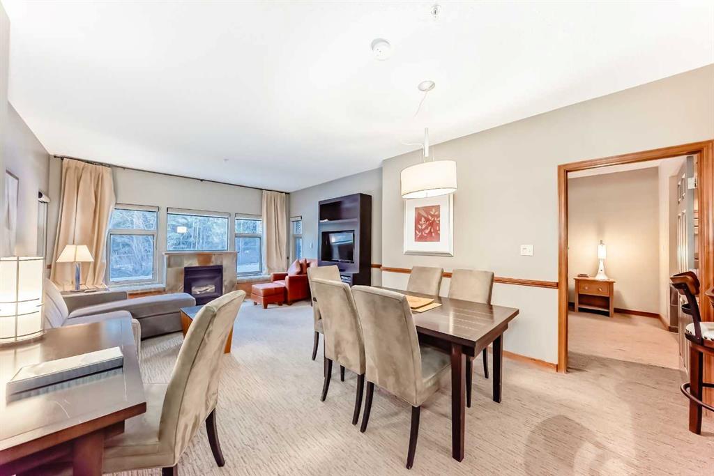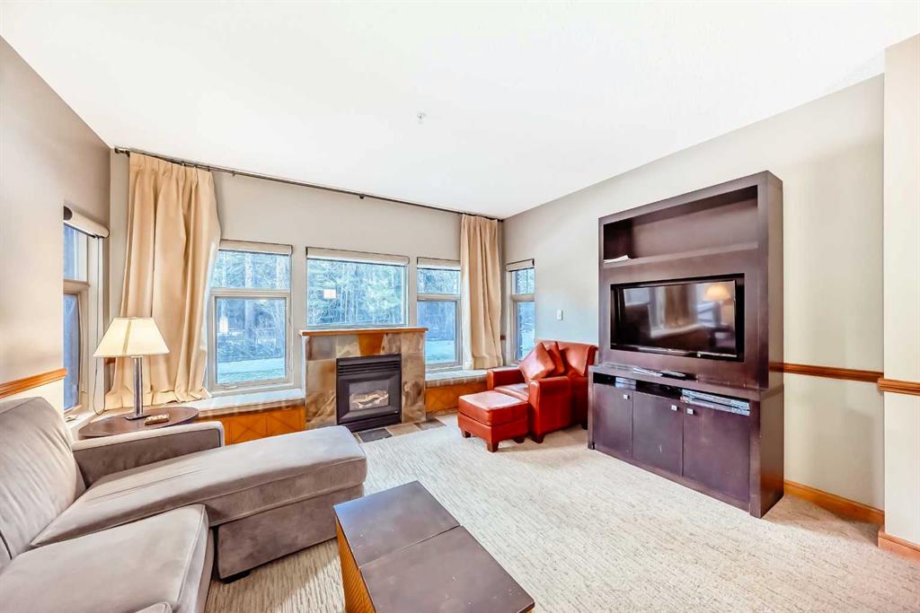 This fully furnished condo features a bright, open-concept layout highlighted by a cozy, window-framed gas fireplace, a spacious kitchen and dining area, and a luxurious jetted soaker tub in the primary suite—perfect for unwinding after a day of mountain adventures. Enjoy your morning coffee or an evening glass of wine, breathe in the fresh alpine air, and explore the surrounding trail network right from your doorstep.