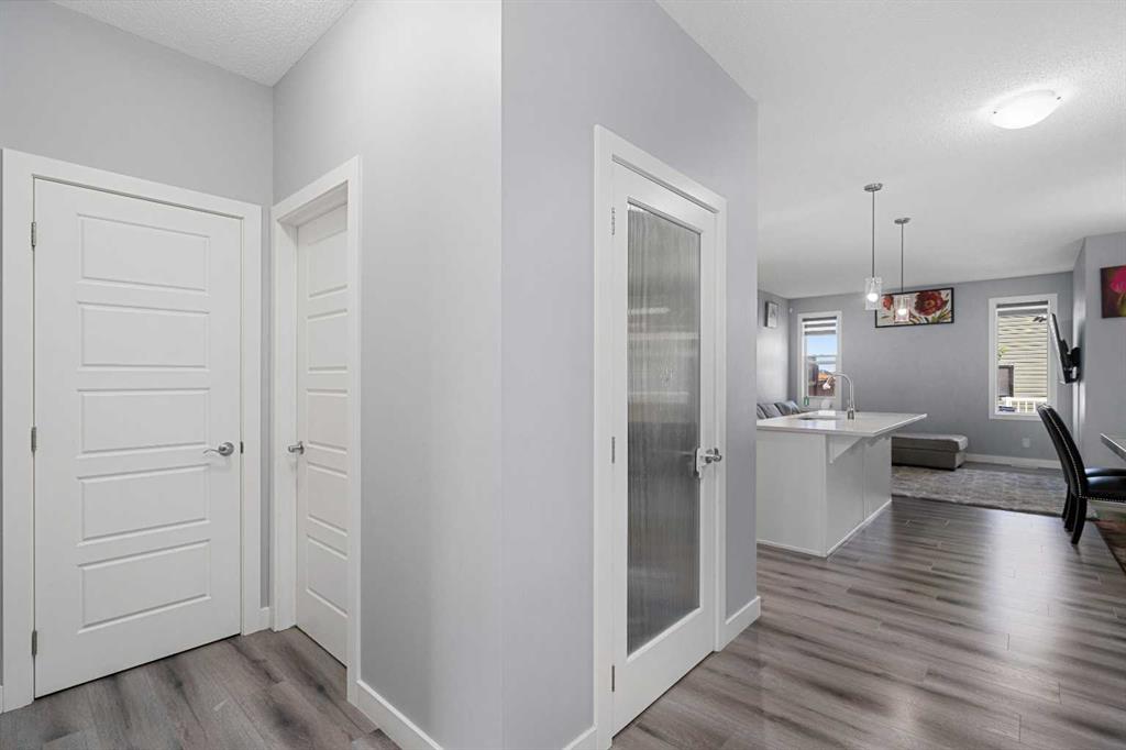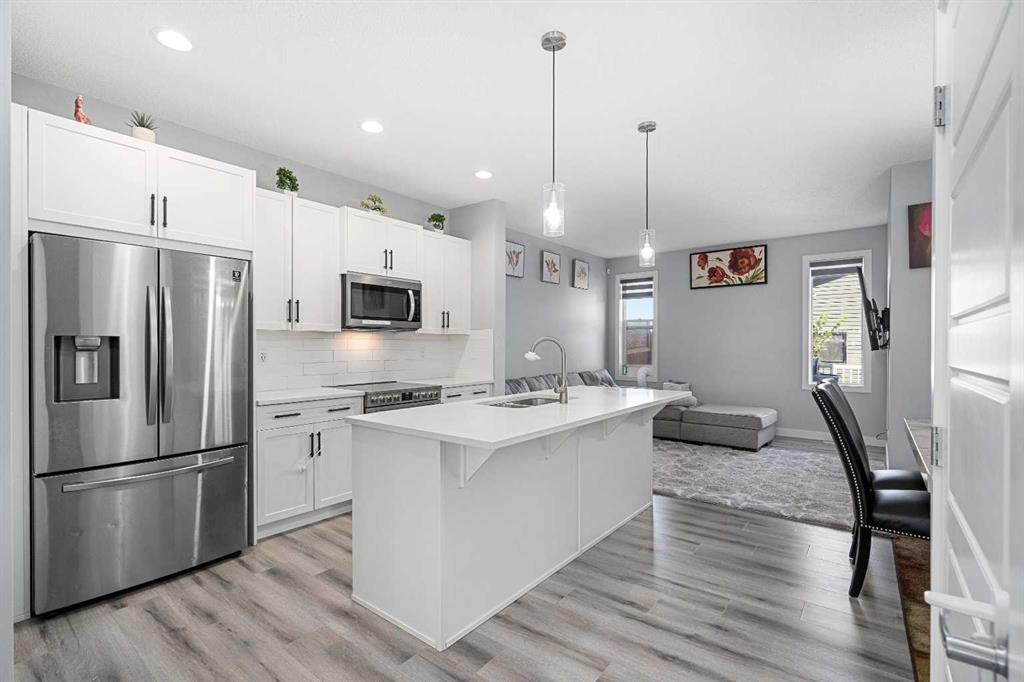 OPEN HOUSE SAT. OCT 25 12-3 PM PRICE REDUCED FOR QUICK SALE. 2025 ASSESSED VALUE FOR THIS HOME IS $623,000, SO THE HOME IS REASONABLY PRICED. Welcome to this charming two-storey home designed for comfort and functionality. It is the award-winning Concord by Broadview Homes. It has the biggest garage in the stretch of semi-detached duplexes. You will fall in love with this beautiful 3-bedroom home, along with an additional Flex room. The versatile flex room will be an ideal home office, playroom, or guest space. You then walk into the exquisite kitchen, with its quartz countertops and beautiful cabinetry. A stainless steel electric stove, dishwasher, microwave, and refrigerator complete the kitchen. The spacious living room and dining area complete the beautiful main floor of this home. The Upper floor has 2 well-sized bedrooms with a 3-piece bathroom. This floor also features a bright, expansive primary bedroom retreat with a 5-piece en-suite for added privacy and relaxation. The basement is unfinished and awaits your creative abilities to turn it into a living space as well. The home is located in Evanston, surrounded by lots of shopping malls and banks. The Moraine, Ambleridge and Starling communities are just a few minutes’ walk away. Carrington and Livington are just about a 5-minute drive from this home. Call your realtor to book a showing. Good bus stops for the Calgary Transit as well as yellow bus stops all within walking distance to this gorgeous home.