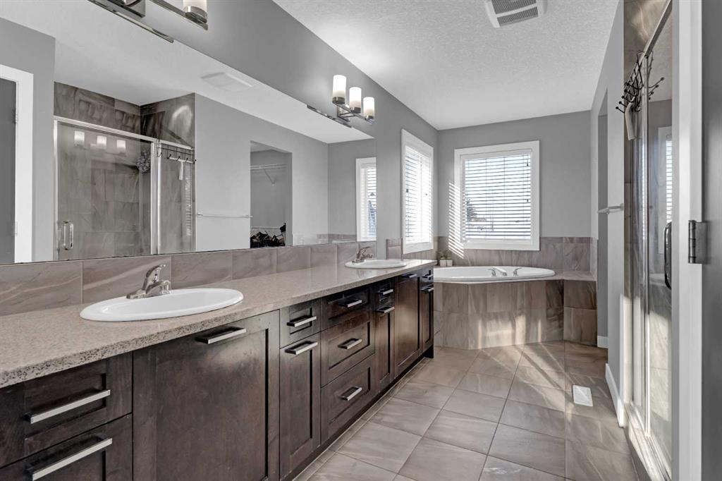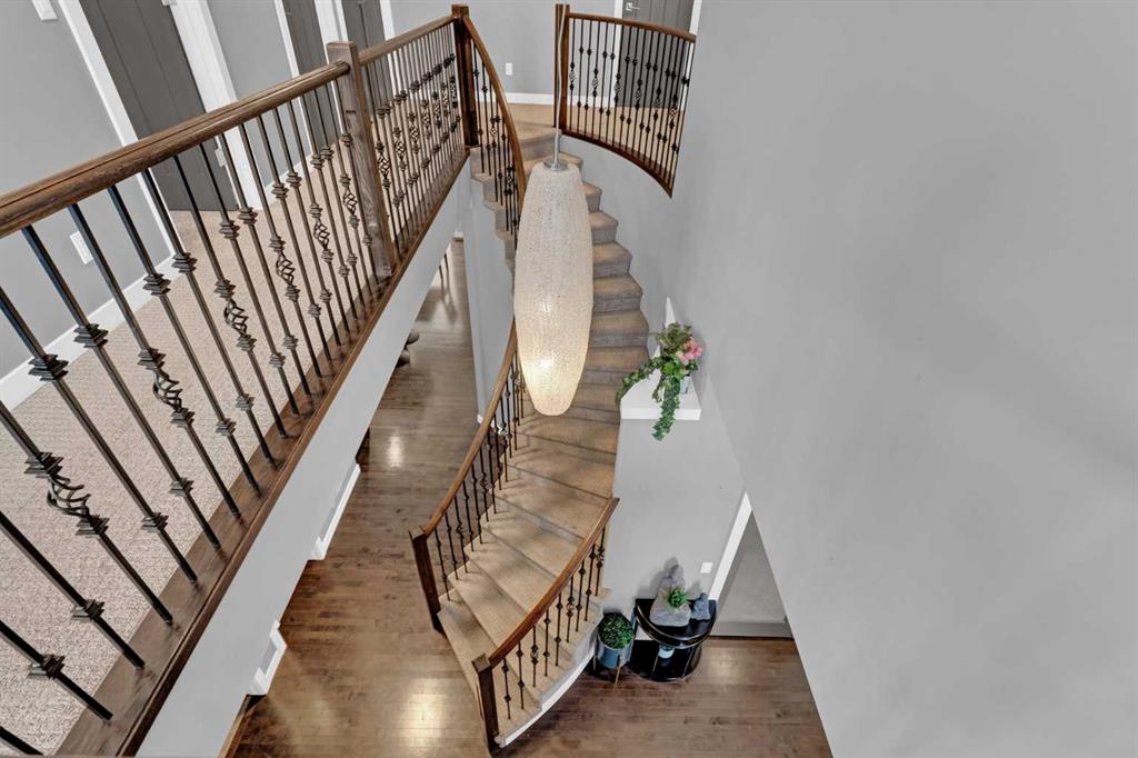 Best deal in Chestermere and Pride of Ownership in every step to and inside this fully detached home sitting on a traditional lot at one of the most desirable courts, near McIvor terr playground, the very popular Chestermere lake, Lakeside Golf Club and much more. Pull up to the deep and double wide driveway leading to the attached front double garage to park your toys and store backyard supplies. Come on inside through a wide main entrance door and you will be greeted by open to above spiral staircase and a private home office. Walk further on the gleaming hardwood floors and observe 9ft ceilings plus 8ft tall doors through the hallway into a stylish kitchen showcasing a large kitchen island, stone countertops, glass cooktop, stainless steel appliances and a walk through pantry. Across, there’s a huge living room that can easily seat large gatherings and a dining area that overlooks the massive deck in the backyard rearing onto a pathway. Upstairs this home is a great example of thoughtfulness for everyday practical lifestyle. Master retreat features a 5pc ensuite leading into walk-through closet that further leads into a private entrance to laundry room besides its 2nd common entrance. Other two generous sized secondary bedrooms come with large double closets and a 4 pc common bath. The Family / bonus room upstairs is a large open space for large families to get together and cherish memorable moments. Downstairs-Unfinished Basement is a large unspoilt area that the next buyers can finish as they wish or use it as-is for gym equipment or games area, as they make this house their home.