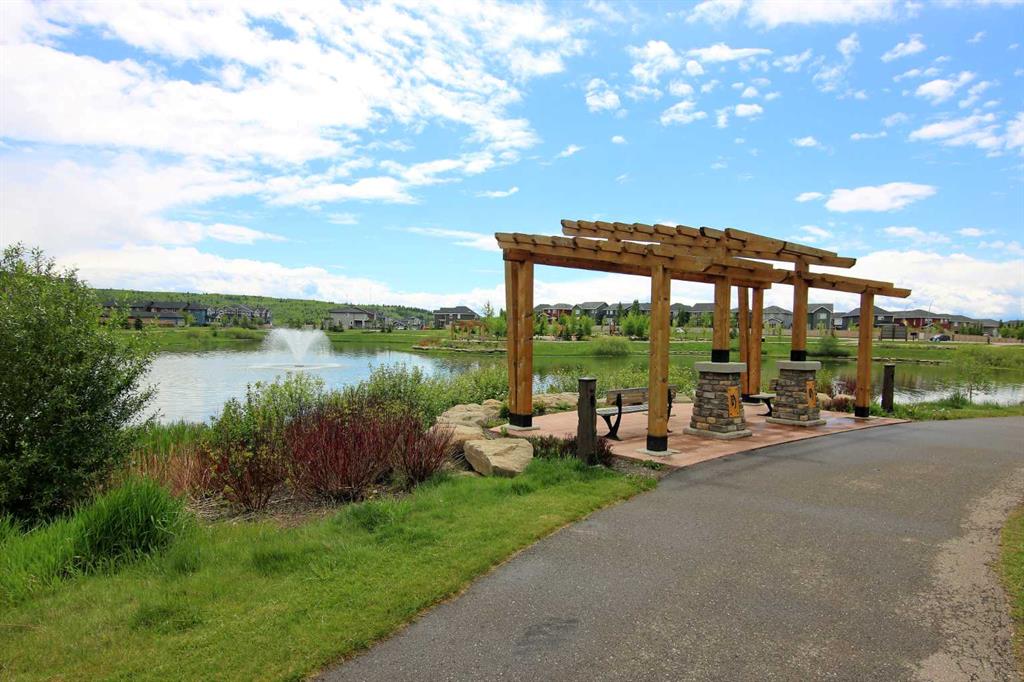 Backing onto a greenbelt & future school site is where you’ll find this truly wonderful home in Cochrane’s popular Sunset Ridge neighbourhood, tucked away on this quiet crescent within walking distance to community playgrounds & parks. Original owners of this Douglas Homes’ two storey, which enjoys engineered hardwood floors & solar panels, total of 3 bedrooms + bonus room, stylish designer kitchen with quartz counters & beautifully landscaped backyard with winding gardens & greenhouse. Bathed in warm natural light, you’ll love the bright & inviting feel of the main floor with its 9ft ceilings & expanse of windows, gracious living room with sleek contemporary fireplace, open concept dining room & outstanding custom kitchen with walk-in pantry, large centre island & stainless steel appliances which includes a Samsung dual-fuel gas range/electric convection oven. Upstairs there are 3 lovely bedrooms & 2 full bathrooms…highlighted by the owner’s retreat with great-sized walk-in closet, views of the greenbelt & soothing soaker tub ensuite with barn door, quartz-topped double vanities & separate shower. Away from the bedrooms is the terrific air-conditioned bonus room with vaulted ceilings…the perfect space to unwind or relax with the family. The unspoiled lower level – with separate side entrance, has roughed-in plumbing for another bathroom & large windows, & offers fantastic potential for future living space. Additional features include the 2nd floor laundry room with Whirlpool washer & dryer, built-in bench in the foyer, roughed-in for radon detector, finished garage with wall-slats, Tesla solar panel system with battery back-up & the piece-de-resistance is the dream backyard oasis complete with deck & stone patio, ornamental pond & fountain, low-maintenance landscaping & greenhouse…which would also make a great place for your hot tub! Leisurely stroll to a playground & the tranquil 6 acre freshwater pond surrounded by winding trails & gazebos, just minutes to the K-8 RanchView School & St Timothy Junior/Senior High, shopping at The Trading Post & quick easy access to downtown Cochrane.