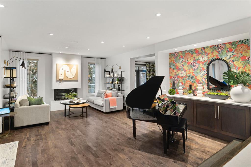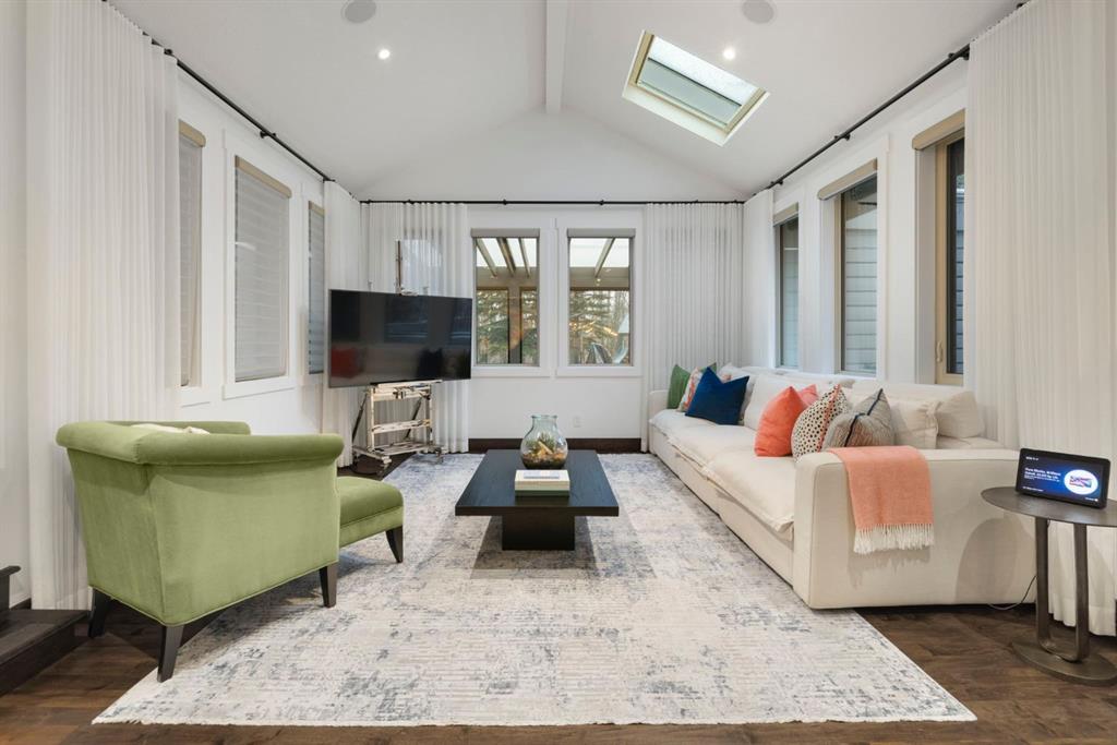 **Watch our CINEMATIC video **Nestled deep within its own private forest yet only 2 minutes from Calgary amenities, this 2-acre estate offers nearly 7000 sq.ft. of living space, a 2-car attached garage, and a 2017-built 1,200 sq.ft. guest house with a 5-car garage below including a 2-piece bathroom, TV, and sound system. Featured in Western Living Magazine, the home has undergone more than $500K in RECENT RENOVATIONS and is truly turn-key. The main floor blends modern luxury with everyday comfort, featuring a high-performance kitchen with dual Caesarstone islands, Gaggenau and Wolf appliances, and a recently added eating bar at the island. The kitchen area flows effortlessly to expansive covered and screened living space with a gas fireplace, heated floors, BBQ, seating area, and large sauna. The space is connected to an outdoor kitchen area with a motorized awning, granite eating bar, stainless-steel cabinetry, a BBQ, smoker, bar fridge, and heated aggregate flooring. The dining room evokes future plans of large gatherings with a 12- person table and an attached sundeck with room for a full size dining table. A family lounge with 3-sided fireplace, a renovated 3-pc powder room, office with built-ins and saltwater fish tank, and refreshed laundry room with a view complete this level.
