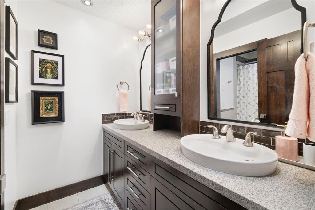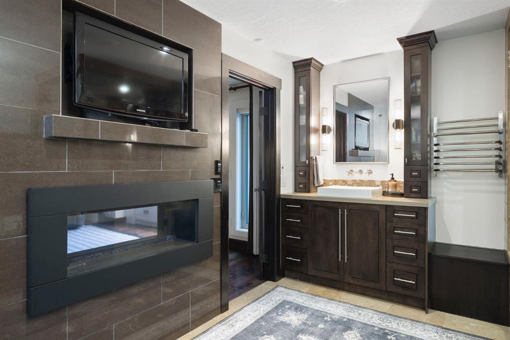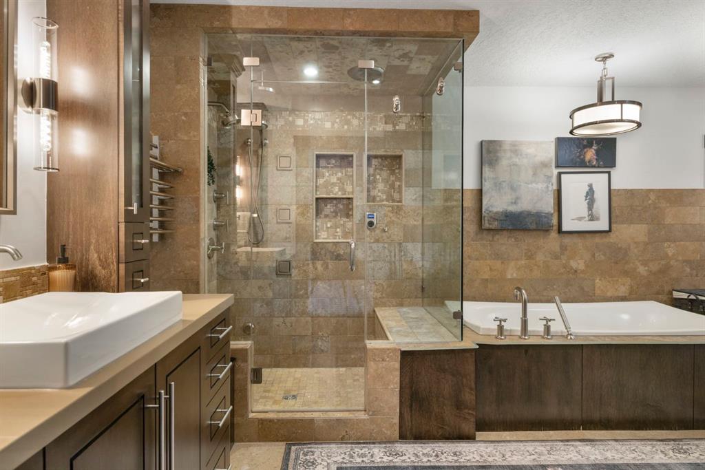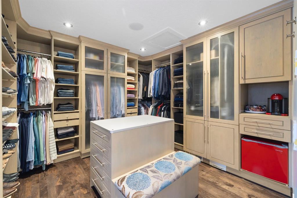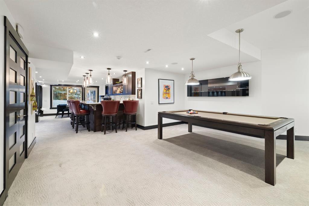 Upstairs, the primary retreat offers a 2-sided fireplace, steam shower with mood lighting and TV, heated floors, jetted tub, his and hers vanities, make-up station, and two redesigned walk-in closets including one with SUNDECK access and a very large second one with an office area. A newly updated kids’ wing has a play area complete with playhouse and 2 oversized bedrooms serviced by a 5-piece bath to complete the floor. The recently upgraded GYM area is spacious and ha an upscale feel with its leather flooring.The walkout level with two access doors, includes a state-of-the-art theatre with recessed seating and illuminated bar, a climate-controlled 104 sqft WINE CELLAR a new full bar with ice maker, dual fridges, dishwasher and microwave, a large recreation area, plus two additional bedrooms and 4-piece bathroom. Walk right out onto a full sports court, kid’s playhouse, and aggregate and glass GREENHOUSE.