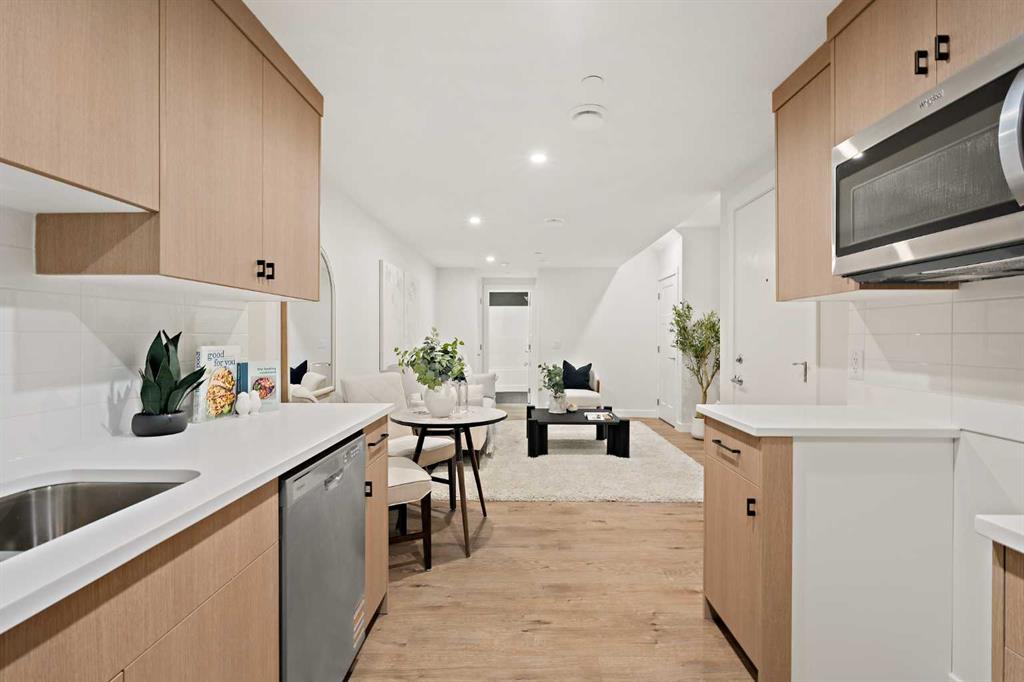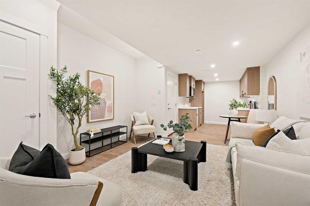 Welcome to the stunning, brand-new Wicklow, built by Brookfield Residential, featuring a legal basement suite and ideally situated in the heart of Livingston, fronting onto a beautiful green space! This thoughtfully designed home offers nearly 1,700 sq. ft. of above-grade living space, with 3 bedrooms, 2.5 bathrooms, a fully legal 1-bedroom basement suite with a private side entrance, and a single-garage with a parking pad, perfect for a rental suite, extended family, or guests. The main level features 9′ ceilings that enhance the sense of space and comfort throughout. At the heart of the home is a gourmet kitchen equipped with a built-in chimney hood fan and a built-in microwave, opening directly to the dining area and patio doors that lead to the backyard. The spacious front great room is filled with natural light from its expansive windows, creating a bright and welcoming atmosphere all day long. Upstairs, a central bonus room smartly separates the primary suite from the additional bedrooms, offering extra privacy. The primary suite includes a walk-in closet and a luxurious 4-piece ensuite with dual sinks and a walk-in shower. Two more bedrooms, a full bathroom, and a laundry room complete the upper level. The fully finished basement features a self-contained legal 1-bedroom suite with a full kitchen and separate entrance, an incredible added value whether you’re looking for rental income or multi-generational living options. The backyard leads to a private single-detached garage plus an additional parking pad for extra convenience. This home is also protected by both the builder’s warranty and Alberta New Home Warranty for added peace of mind.