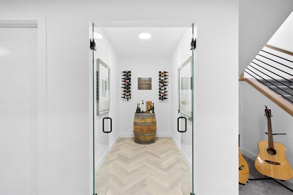 Step into refined simplicity with this exquisite newly built Scandinavian-style bungalow showcasing modern design and natural beauty. “The Olso” was created and built by Ironstone Custom Homes. Thoughtfully crafted with clean lines, organic textures, and an emphasis on light and space, this home redefines contemporary comfort with an array of high-end upgrades and sophisticated features. From the exterior, the home’s minimalist architecture captures attention with its blend of SAGIWALL custom white oak exterior cladding that is a completely maintenance free product! As well James Hardie concrete infused matte black accent panels, and oversized windows that bring the outdoors in. The single-level layout offers the ultimate in ease and accessibility, while maintaining an elegant and airy presence. Inside, you’re welcomed into an open-concept living space radiating warmth and functionality. Vaulted ceilings and expansive windows create a sense of volume and tranquility, enhanced by engineered wide-plank hardwood flooring, soft white walls, and the calming palette typical of Nordic design. At the heart of the home lies a gourmet kitchen, featuring sleek quartz countertops, custom cabinetry, designer fixtures, and a full suite of premium stainless steel appliances—perfect for both entertaining and everyday living. A butlers pantry awaits you with a storage on one side and additional cabinets on the other side. The spacious office over looks the landscaped front yard. A seamless transition between the gourmet kitchen, dining area and living room create perfect synergy. The bungalow offers spacious bedrooms, each designed with simplicity and comfort in mind. The primary suite is a private retreat with direct access to the outdoor deck with separate space for cooking , a retreat with a wood burning fireplace and hot tub area. This luxurious ensuite bath, featuring a double vanity, walk-in glass shower, separate tub and spa-like finishes. A massive closet with builtins galore. Every corner of the home is elevated with smart home features, upgraded lighting, and energy-efficient systems. Seamlessly extending the living space outdoors is a true highlight: an exceptional outdoor experience anchored by a grand wood-burning fireplace. This custom-built stone feature sets the tone for year-round gatherings under the covered patio. Whether you’re enjoying crisp evenings beside the fire or hosting al fresco dinner parties, the space offers an intimate connection to nature, blending modern luxury with rustic charm. The basement is fully finished offering 3 massive bedrooms, builtins, a full bathroom, exercise room, wine room a family room and recreation space. Don’t miss the hidden door or the triple car garage completely done out!! Covered by New Home Warranty with upgrades galore, timeless Scandinavian design, and an unbeatable indoor-outdoor flow, this is a rare opportunity to own a home that’s both effortlessly stylish and functionally flawless.