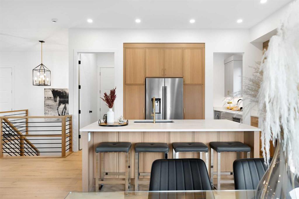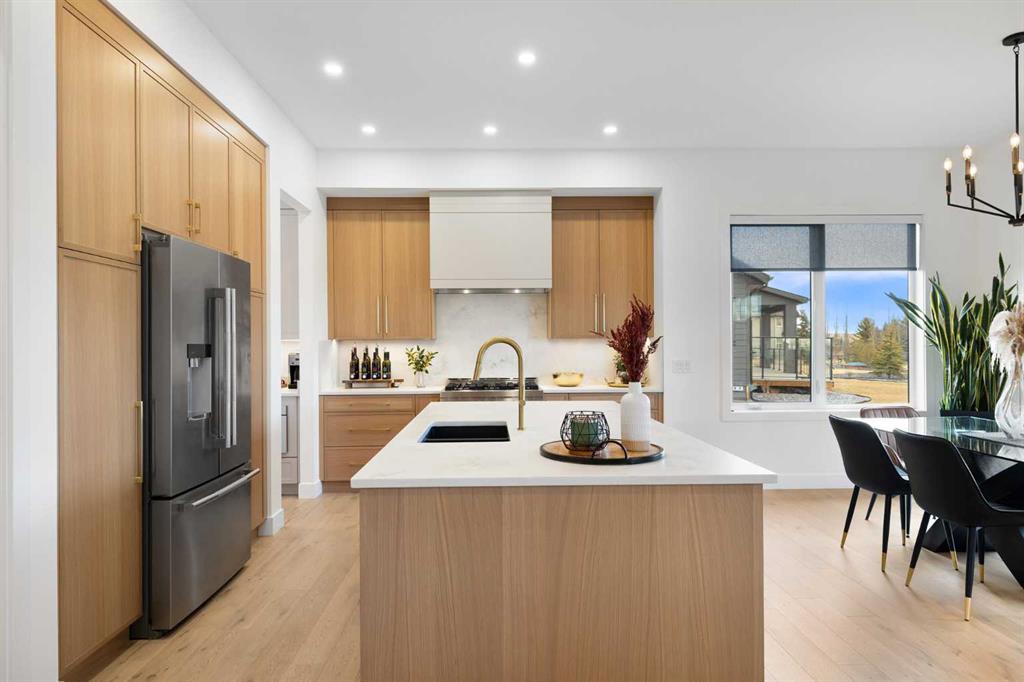 Step into refined simplicity with this exquisite newly built Scandinavian-style bungalow showcasing modern design and natural beauty. “The Olso” was created and built by Ironstone Custom Homes. Thoughtfully crafted with clean lines, organic textures, and an emphasis on light and space, this home redefines contemporary comfort with an array of high-end upgrades and sophisticated features. From the exterior, the home’s minimalist architecture captures attention with its blend of SAGIWALL custom white oak exterior cladding that is a completely maintenance free product! As well James Hardie concrete infused matte black accent panels, and oversized windows that bring the outdoors in. The single-level layout offers the ultimate in ease and accessibility, while maintaining an elegant and airy presence. Inside, you’re welcomed into an open-concept living space radiating warmth and functionality. Vaulted ceilings and expansive windows create a sense of volume and tranquility, enhanced by engineered wide-plank hardwood flooring, soft white walls, and the calming palette typical of Nordic design. At the heart of the home lies a gourmet kitchen, featuring sleek quartz countertops, custom cabinetry, designer fixtures, and a full suite of premium stainless steel appliances—perfect for both entertaining and everyday living. A butlers pantry awaits you with a storage on one side and additional cabinets on the other side. The spacious office over looks the landscaped front yard. A seamless transition between the gourmet kitchen, dining area and living room create perfect synergy. The bungalow offers spacious bedrooms, each designed with simplicity and comfort in mind. The primary suite is a private retreat with direct access to the outdoor deck with separate space for cooking , a retreat with a wood burning fireplace and hot tub area. This luxurious ensuite bath, featuring a double vanity, walk-in glass shower, separate tub and spa-like finishes. A massive closet with builtins galore. Every corner of the home is elevated with smart home features, upgraded lighting, and energy-efficient systems. Seamlessly extending the living space outdoors is a true highlight: an exceptional outdoor experience anchored by a grand wood-burning fireplace. This custom-built stone feature sets the tone for year-round gatherings under the covered patio. Whether you’re enjoying crisp evenings beside the fire or hosting al fresco dinner parties, the space offers an intimate connection to nature, blending modern luxury with rustic charm. The basement is fully finished offering 3 massive bedrooms, builtins, a full bathroom, exercise room, wine room a family room and recreation space. Don’t miss the hidden door or the triple car garage completely done out!! Covered by New Home Warranty with upgrades galore, timeless Scandinavian design, and an unbeatable indoor-outdoor flow, this is a rare opportunity to own a home that’s both effortlessly stylish and functionally flawless.