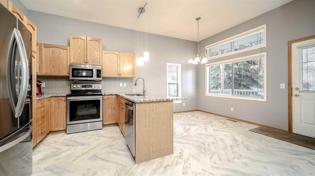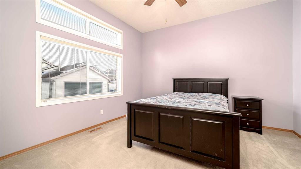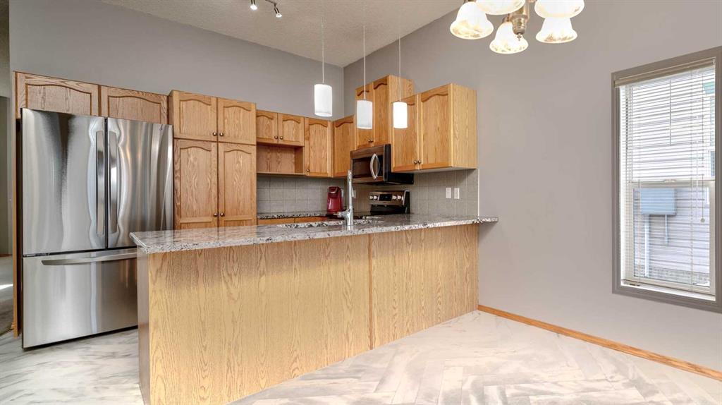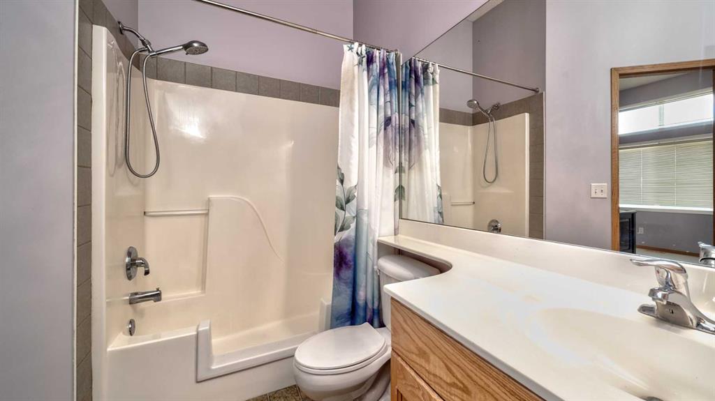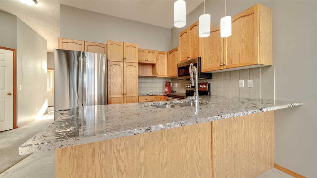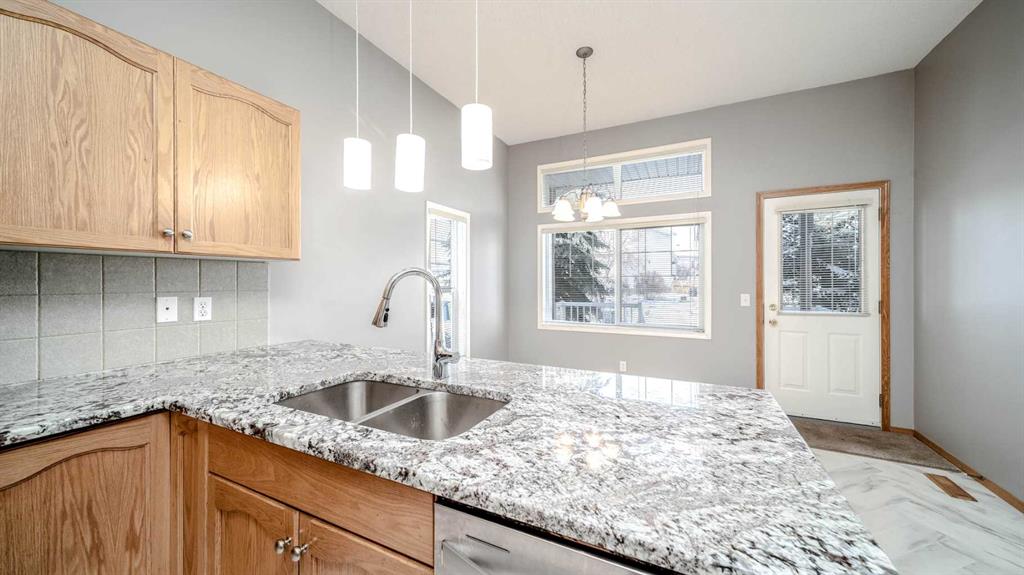 Fabulous 3 bedroom, bungalow villa with double attached garage in McKenzie Towne! Superb main floor plan featuring soaring 10 ft. ceilings. Step into an inviting foyer that opens to a spacious living room with large windows and sunny, south exposure. The kitchen offers an abundance of cabinetry, breakfast bar, granite countertops, newer stainless appliances and open to dining room overlooking the back deck. Two generous sized bedrooms grace the main floor including the master, complete with walk-in closet and 3 piece ensuite bath. The fully finished lower levels includes a huge recreation room with corner gas fireplace, third bedroom, 4 piece bath and loads of storage space. Enjoy the convenience of a main floor laundry room, central air-conditioning and double attached garage. Perfectly located across from visitor parking and a short walk to community parks & pathways, schools and shopping. A wonderful place to call home!