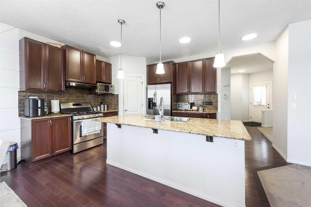 Welcome to this spacious and beautifully designed home offering the perfect blend of comfort, functionality, and room for the whole family. The main floor features a bright and inviting living room with large windows that fill the space with natural light, along with a separate extended family room that provides even more space for relaxing, entertaining guests, or spending time together. With two spacious primary bedrooms, this home is ideal for larger families, extended family members, or anyone looking for extra privacy and comfort. The layout is thoughtfully designed to offer multiple living areas, generous bedroom space, and everyday convenience, while the double attached garage adds secure parking and additional storage. A separate side entrance leads to the basement, which includes two bedrooms, a kitchen, and full bathrooms, making it a great option for extended family use or additional flexible living space. Outside, the finished backyard offers a comfortable area to relax, entertain, or enjoy summer evenings, with back alley access adding extra privacy and convenience. Located close to public transit, schools, playgrounds, nearby plazas, grocery stores, shops, amenities, and major highways, this home offers exceptional space, flexibility, and convenience in a highly accessible location.