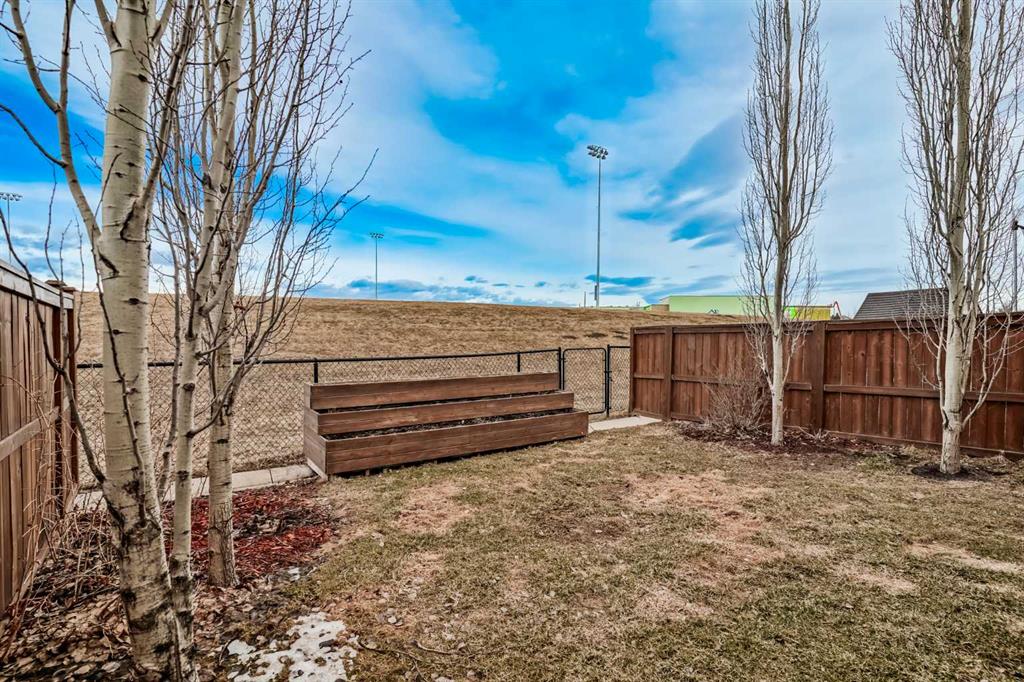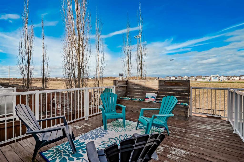 The dining space is GENEROUSLY SIZED — yes, your full table actually fits here — and opens seamlessly into the living room where a cozy GAS FIREPLACE sets the mood. Then the real mic drop: sliding doors lead to a MASSIVE WEST FACING, sun-drenched MULTI-LEVEL DECK overlooking the sports field behind. No neighbours crowding your view, just golden evening light, open skies, green space, and raised garden boxes ready for your summer tomato era.