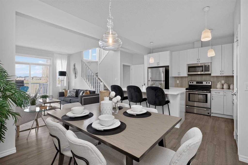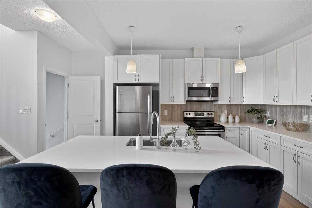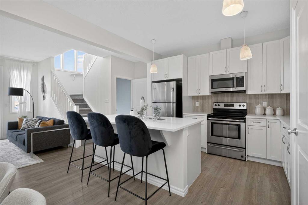 **Open House Sunday May 3 from 1-3pm** Say hello to this WHISTLE-CLEAN showstopper in Cochrane — an UPDATED semi-detached stunner with NO CONDO FEES that absolutely punches above its weight! From the moment you pull into the single ATTACHED GARAGE, this home delivers serious family-friendly showhome quality energy. Inside, the main floor comes in HOT with SOARING 9-foot CEILINGS, an airy OPEN-CONCEPT layout, and the kind of natural flow that style savvy families love. The kitchen is sleek, sharp, and built to impress with QUARTZ countertops, stainless steel appliances, smart-sized ISLAND, and plenty of space for everything from rushed school mornings to wine-and-charcuterie nights.