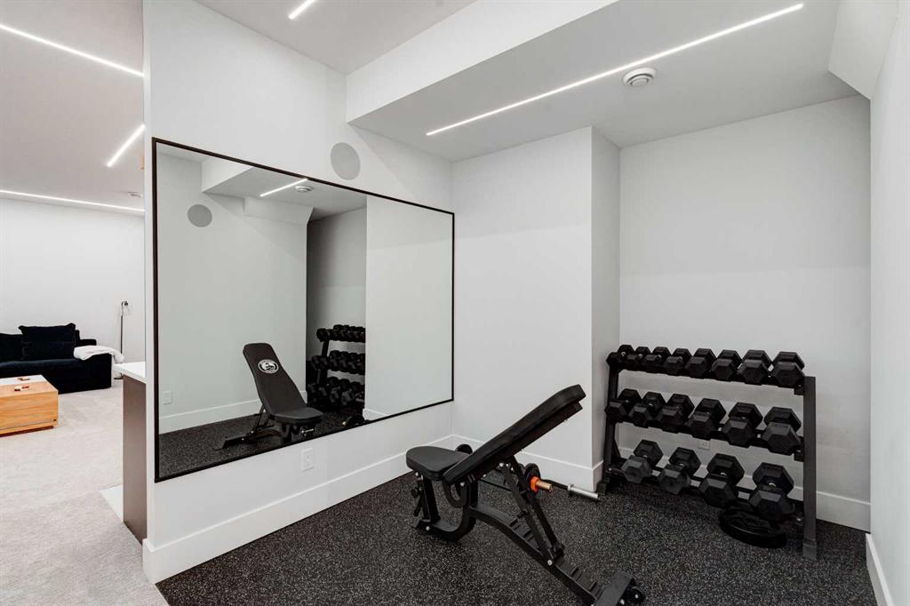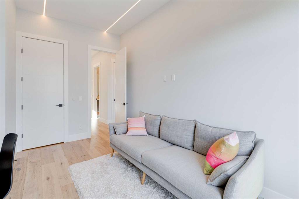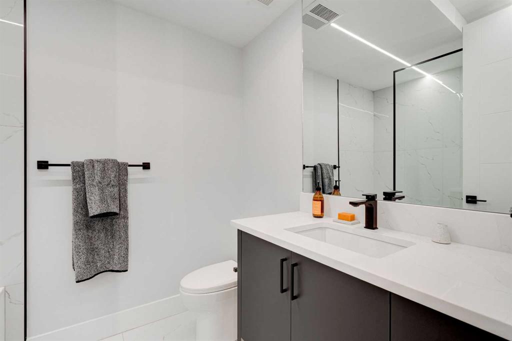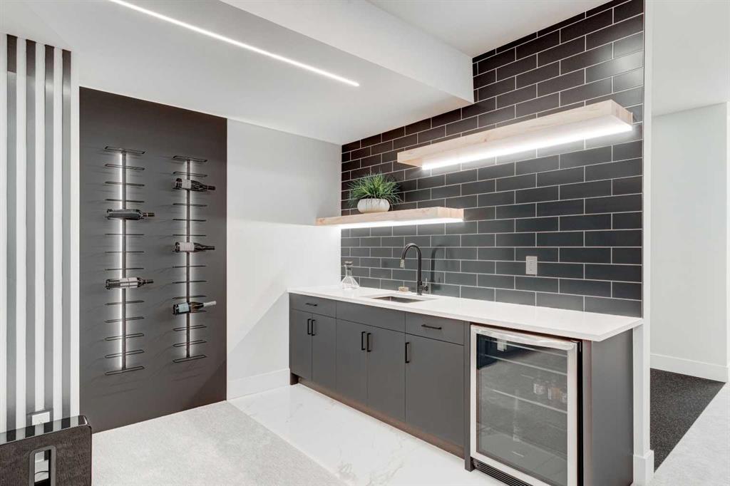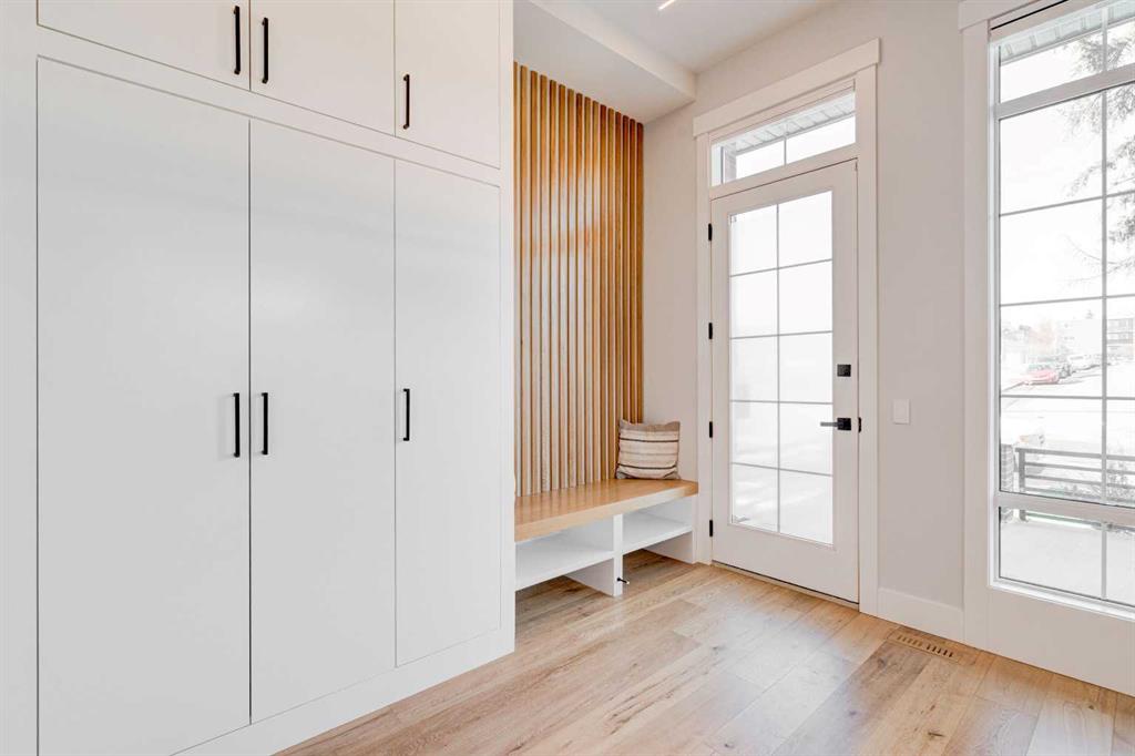 Step into refined luxury in this stunning modern home, perfectly situated in UPPER MOUNT ROYAL! Designed for effortless living, this 4-bed, 3.5-bath masterpiece offers endless impeccably crafted living space w/ high-end finishes and upgrades throughout! The striking brick exterior, lush artificial turf, and integrated lighting create an unforgettable first impression. Inside, the foyer welcomes you w/ soaring ceilings, wide-plank hardwood floors, and a stylish built-in bench w/ wood slat wall. A bright, open dining space w/ designer lighting and modern wood accented wall flows seamlessly into the high-end kitchen, a true showstopper w/ a massive waterfall quartz island, full-height flat panel cabinetry, and premium appliances. The sleek black and wood-accented cabinetry is complemented by under-cabinet lighting and island pendants that add a warm, inviting glow. The living room is anchored by a statement fireplace w/ floor-to-ceiling black marble w/ gold veining, creating a sophisticated yet cozy retreat. A wall of sliding glass doors extends the living space onto the deck, where extra-wide steps lead to the beautifully landscaped backyard featuring PRIVACY SCREENS, landscape lighting, and underground sprinklers for easy maintenance. An elegant powder room w/ a black vessel sink and a side mudroom w/ built-in storage round off the main level. A custom glass-enclosed staircase w/ open riser stairs and LED accent lights leads to the second floor, where the primary retreat is a true sanctuary. The spacious bedroom features modern ceiling lighting, arched windows, a sliding barn door, and a spa-inspired ensuite. The ensuite is a masterpiece w/ black and gold-veined marble, a freestanding tub, a glass-enclosed STEAM SHOWER w/ a rainfall head, and HEATED FLOORS for ultimate comfort. Two additional bedrooms, a sleek 4-piece bath w/ upgraded shower glass and heated floors, and a well-appointed laundry room w/ extra storage, a sink, and geometric tile flooring complete this level. The fully finished basement is the ultimate entertaining space, featuring a spacious media room w/ a built-in entertainment unit, a stylish wet bar w/ a full-height backsplash and wine storage, and an exercise area w/ rubber flooring and a mirrored wall. A fourth bedroom and another full bathroom w/ upgraded shower glass complete this level. This home is fully equipped w/ SMART HOME TECHNOLOGY, allowing you to control heating, cooling, lighting, security, and even the fireplace – all from your phone! The built-in sound system ensures seamless audio throughout, while Hunter Douglas AUTOMATED BLINDS add a touch of convenience. Additional features include A/C, security cameras, and an insulated DOUBLE GARAGE roughed-in for a gas heater. Located just steps from 17th Ave, this home offers unbeatable access to top restaurants, cafés, shopping, parks, and some of Calgary’s best schools. Enjoy the perfect blend of urban convenience and upscale living in one of the city’s most sought-after neighbourhoods!