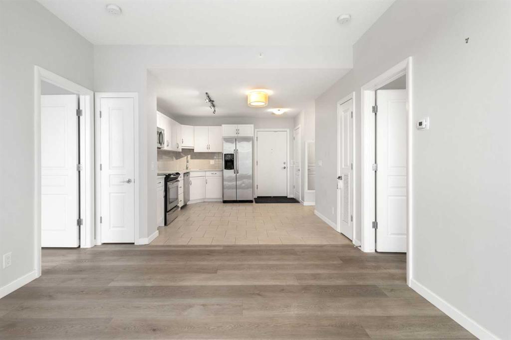 The kitchen is both practical and modern, featuring quartz countertops, full-height cabinetry, and stainless steel appliances, seamlessly connected to the main living space for everyday living and entertaining. The open-concept design enhances the overall sense of space and flow.